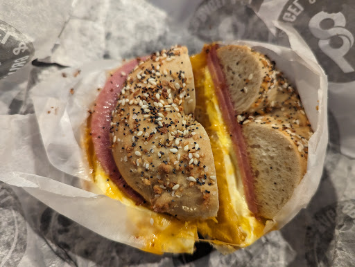 For my first visit, I picked up a Jersey Shore (Taylor ham/egg/cheese) on an everything bagel to go. The sandwich was prepped quickly, and the pricing was fair. The melty cheese/salty meat combination hit all the right flavor notes. The bagel, however, was chewier and breadier than a true New York style, and the texture seemed a bit off. They make them in-house rather than using New Garden as a supplier, so they get points for effort at least.