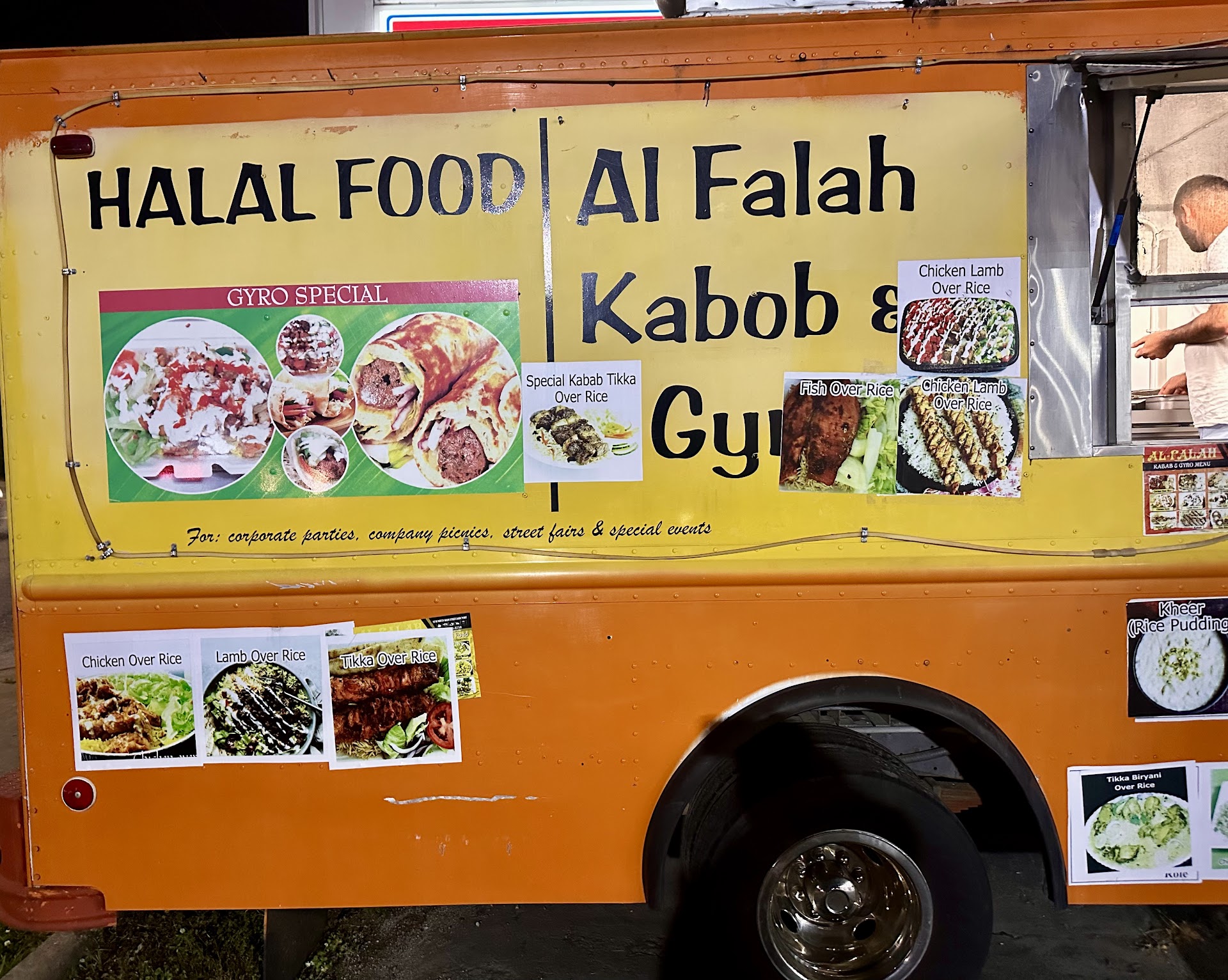 Read moreAnytime I am in High Point I drive by the gas station to see if this food truck is open……even if I have already eaten. I always need to take some home and a LARGE container of their rice pudding! Located on N. Main Street in the parking lot of a Mobil Gas Station, you can see this Orange truck from the street. Every dish on his menu is pictured on the truck and I can say I have tried half of them and never been disappointed. Whether it’s chicken, lamb, gyro, everything is seasoned and cooked perfectly. The last touch is their homemade sauces and you can ask for none, a little or extra. The flavors of the proteins mixed with their rice is just amazing. And DO NOT leave without getting some of their velvety, smooth rice pudding with a hint of cinnamon…….OMG…..I thought my Latino family made the best, well I was wrong! The owner is polite and service is quick. Some people will eat in their cars. He use to have two tables by the truck but I have not seen them lately. It is a gas station and you will see some weirdos around at times but there are always customers around as he is very busy with orders. If you’re around or after a baseball or soccer game, stop by. You won’t be disappointed as this is the most traditional Halal food I have...