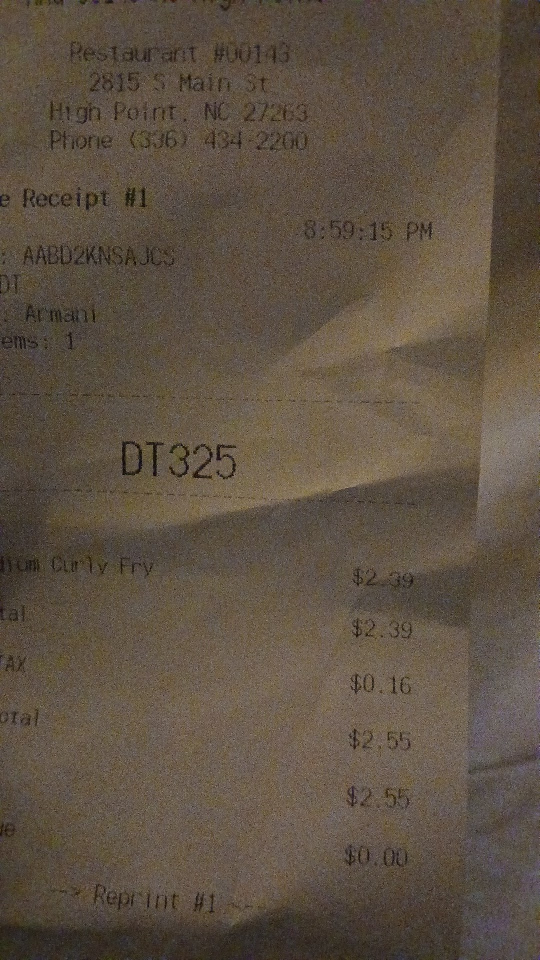 Ā Ā Ā Read moreI'm on lunch break at the arbys in highpoint on south main. I ask for a large fry. Pay for it and the young lady at the drive thru window say it will be thirty minutes for fresh fries š I say what? She replied I ment three minutes pull forward after she took my money. I am waiting and finally she comes out 15 mins later and it's someone else's order and she say o they say you pulled off š ( keep in mind I only get thirty minutes and I work seven minutes away) i just looked at her in disbelief due to me only being a few feet away from the drive thru window and the woman mopping the dinning š½ area saw me as well. I ask for my receipt and she goes back in. Another 15 mins later she brings my food and say she threw away my receipt. My experience here was not on point like it always is. I like arbys and it's close to my job but I will stop here in the daytime, cause night time will forget bout you waiting on your food, that you paid for and they was not busy. Me, one person in the drive thru and another car in front of me waiting for food also. Guess who earned themselves a point for being late back from lunch....