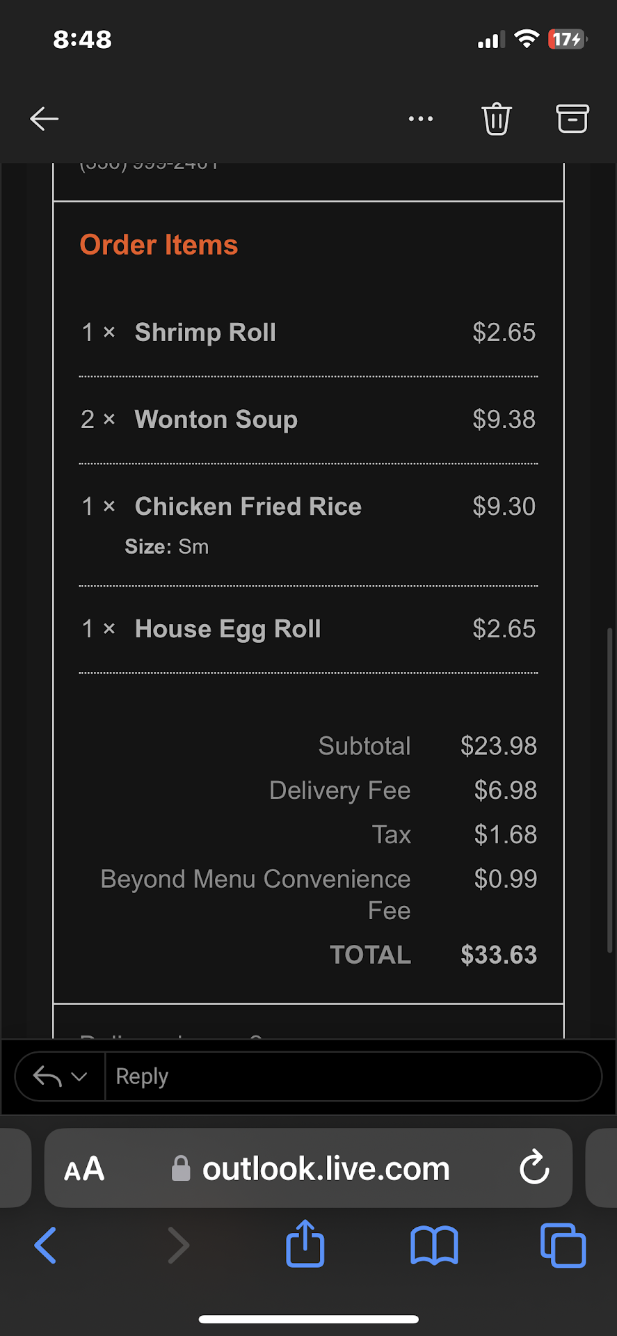 Recently, I ordered Mushu chicken for takeout. The dish was subpar - barely any chicken (just a few pinky-tip sized pieces) and stale rice wraps that fell apart, causing most of the meal to end up on my lap, on the carpet or in the trash. When I politely called to report the issue, I was met with a kindhearted cashier, and reported the issue. And while I regretted to complain my dinner was all over my lap and floor. So, after much coaxing, my family insisted I return the dish, and so I called back and explained to the cashier Iâd return the rest of the meal. Upon returning to the restaurant to exchange the meal (as I didn't want to burden them by asking for a refund), I was confronted by a manager who was both rude, lacking understanding and confrontational. She repeatedly insisted I complained about the food being spicy (which I never mentioned) and accusing me of trying to exchange a meal I had eaten. Which I had not⊠Perhaps I should have invited her to come to my house and shampoo the carpet where her once prepared meal now laid upon due to her stale cracked wraps and sloppy chicken-less Mushu dish laid.