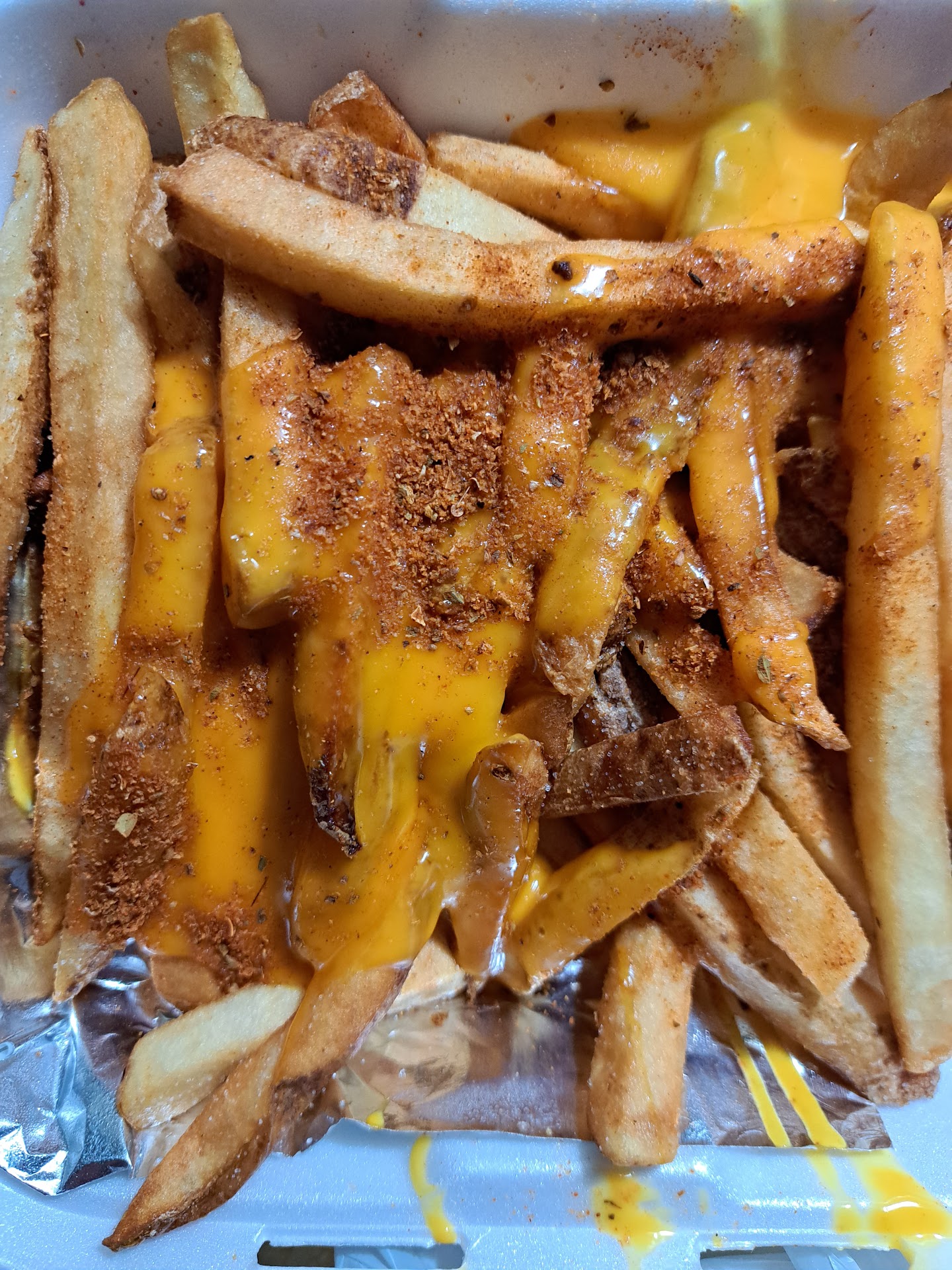 Read moreThis is the second time I’ve been through here and asked for fresh fries with seasoning and I got neither. The fries (chicken strips are rubbery) taste like they’ve been under the warmer for at least an hour or two and of course I don’t trust asking for fresh ones because I know what kind of world we live in these days and I’ve seen firsthand what can happen when you say something. I’m not trying to accuse someone of doing something to the food or say this crew would… but you just can’t trust it when you can’t see it remade. You would think when you specifically ask for fresh, and pay what you do for food that they could at least make it fresh and hot instead of lukewarm mushy fries and not what you ask for. The cheese bites are never hot and melted inside, cool to the taste and very chewy. It’s almost as if they redrop old ones or something to make the outer part crispy again but inside doesn’t heat up. I’d add my photos of my mushy brown fries but it won’t let me. If it’s old grease, please change it because this is nasty and unacceptable. Pretty sure this is a late night stop where it’s just been under the warmer a...