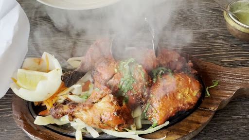 Ā Ā Ā Read moreGreat delicious Indian food ! Very welcoming and helpful the moment you walk in , the inside of the restaurant is very classy and nice. Beautiful glass wine room as you walk in, they have a Bar available and outdoor seating as well . Our waiter was very helpful on describing the food choices and very helpful and welcoming. We visited around lunch time and it was not crowded at all so we enjoyed having the patio to ourselves. You have try the chicken masala it has very delicious spices and flavorful sauce paired with the rice and the bread . They use a lot of spices in there food so if your not used to that this place may not be it for you . We loved the fact they have a spicy level , if your used to eating hot and spicy you can handle there hot level . The sauces they serve with the lentil chip from the beginning is very flavorful. Overall we had a great time and great food ,I will say it is pricey to eat here lunch and dinner but food definitely worth it . Bathrooms and overall restaurant very clean. Parking is not a problem , plenty of space and if your a vegetarian this would be great option to enjoy because they have several dishes that are veggie . I would definitely come back to try a different dish . The only reason Iām giving it a 4 star is because my husband dint like the shrimp in his meal , the shrimp was not cooked properly to him and he found a few of the shrimp tails in his masala soup . But my dish and experience was great so I encourage you to check this new place out...