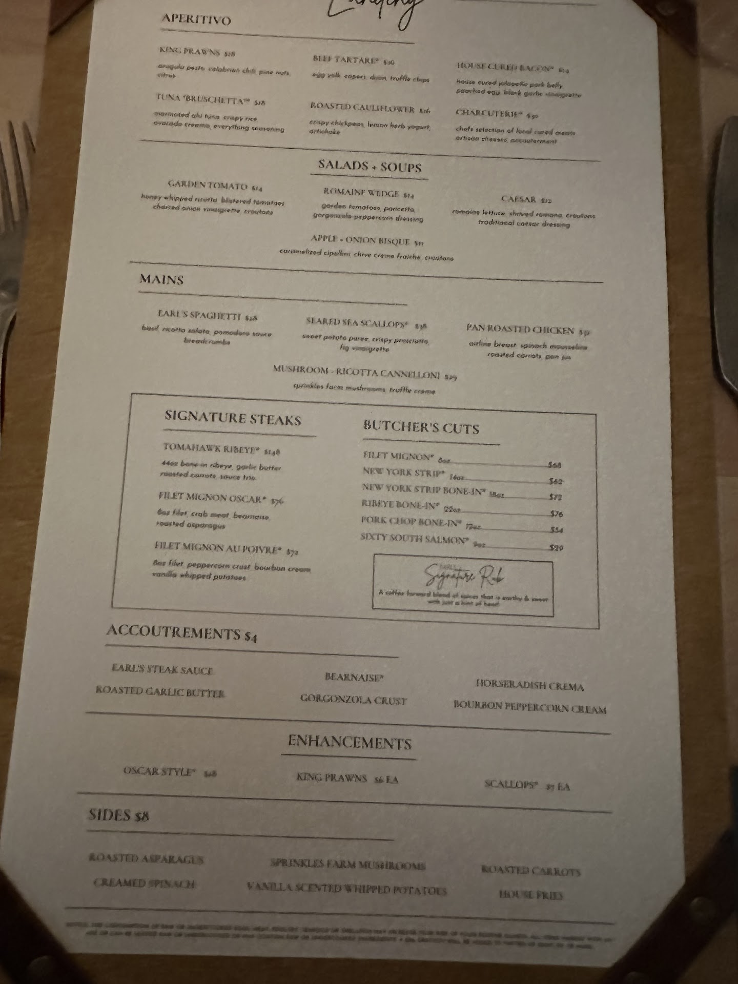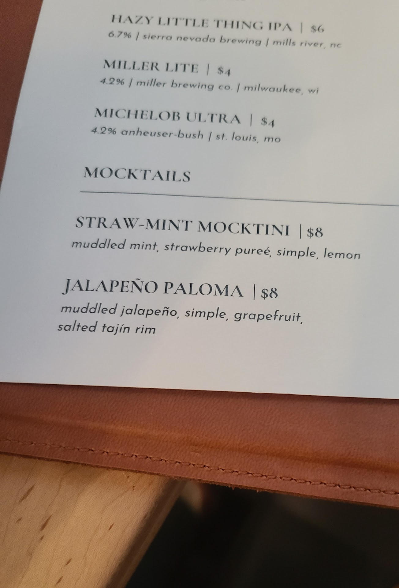 I found the wine and drink menu to be excellent. The wine selection was creative and diversified. I enjoyed trying some new wine options. The server was unfamiliar with the wines to make a recommendation but the bartender came over and expertly made their suggestions. Not a single bottle of Meiomi in sight. (That’s a good thing)