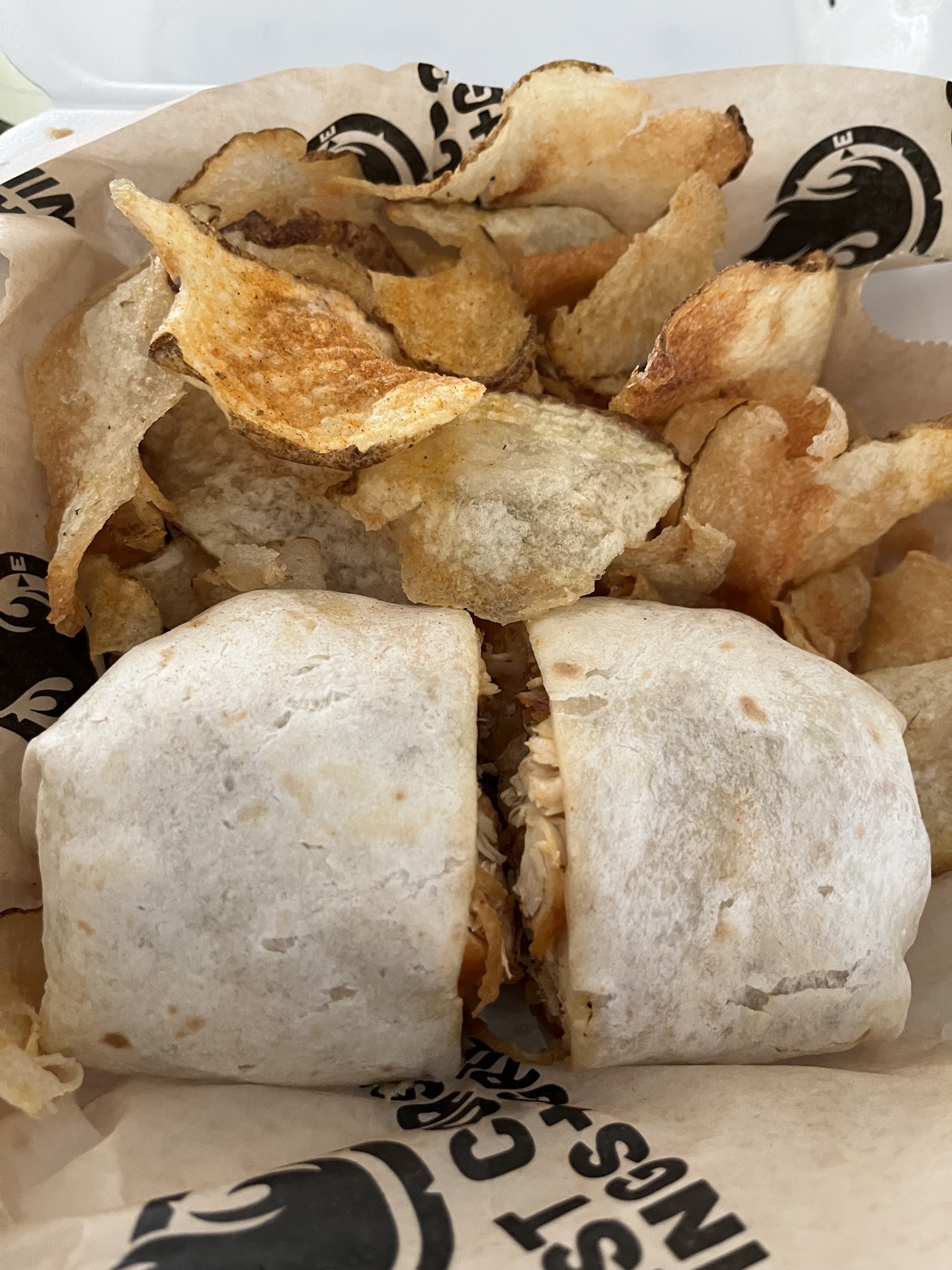 The reason I would say 3.5 instead of four stars is that it seems like the quality and taste of their food has slipped a little bit over the last few months. My wife said the wrap wasn't as good as she remembered them being and I thought the wings were smaller than they used to be.