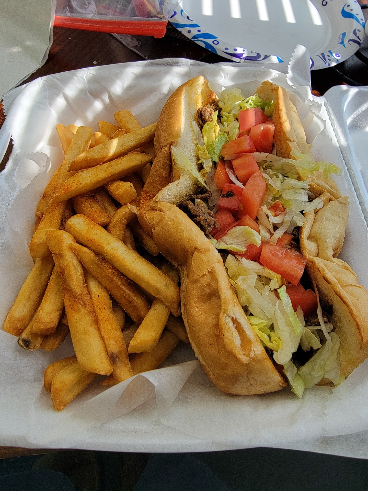 Food was terrible. My party & myself, we met up from 2 different cities, but both barely had a proper portions & got belly aches immediately after eating them. The chicken was burnt & the sub just looked like a toasted bread sandwich. Fries had so much red seasoning on it could not eat them. They also charge like $3.5% if you use a card. Overpriced food salad cost $14.99 with a card. Salad had like 1 small slice of tomato dices to over an 1/8th. Had like 4 very tiny bell peppers. Pitiful amounts they give but the grilled chicken was burnt & I know it is at least a weak old. I feel like if you don't have enough food or it is not fresh remove from the menu. I just highly don't recommend this establishment & they will never get the chance to get like $29 for such disgusting & old chicken. Shame on yall, do better & if you can't get out of our town. I don't care how long you been there yall food certainly does...