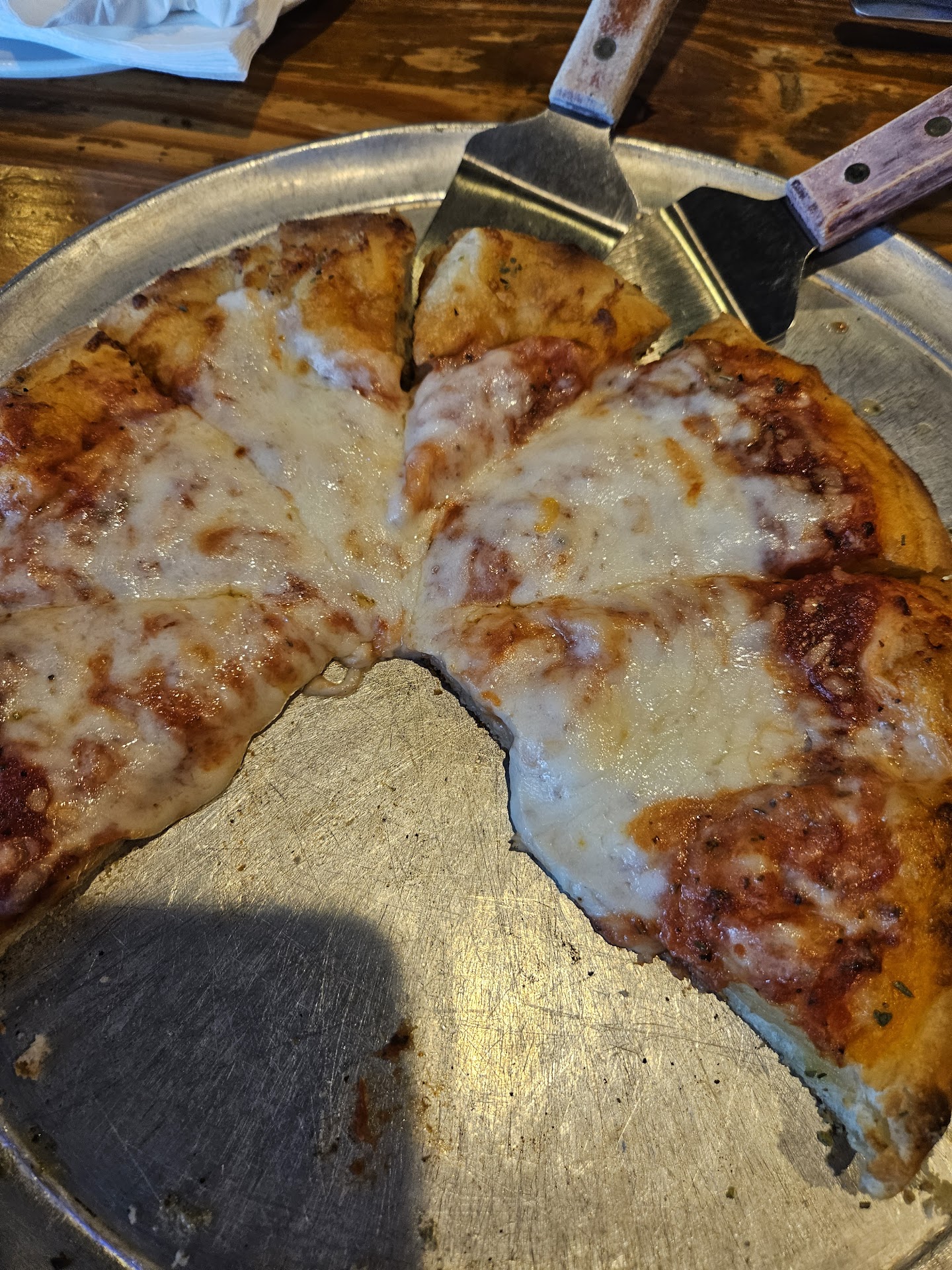 Read moreWe have been eating and drinking here for over 15 years and have always gotten great food and personal service. I'm sad to say that NONE of that happened today. It was like all of the people we knew who worked there just up and left. Our normal waitresses.... the cook.... everybody gone! It definitely showed in the food and service. It was not busy at all and our waitress was a young lady we've never seen before who was not very good at her job. The food..... total disaster. The loaded cheese fries were greasy and had very little cheese but were edible. We got the boneless wings and a small cheese pizza for main course. Look at attached pics. Says it all. The boneless wings were burned, dry, and very little sauce. The biggest let down was the pizza.... this pizza was soggy and cold on the bottom with hardly any cheese on a pizza with ONLY cheese as the topping. See Pic. This place had the best pizza in town....no exception. We spent over $60.00 this trip and got very bad food. PLEASE BRING BACK THE OLD WAIT STAFF AND COOK...or plan on...