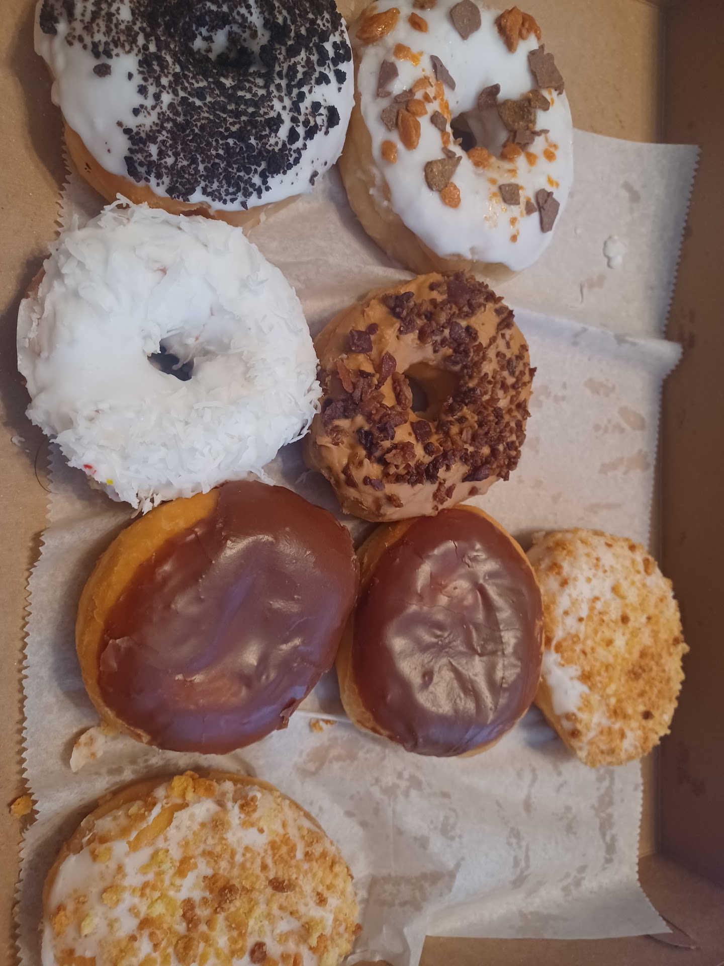 Read moreI recently went to purchase some doughnuts to treat my family. I personally don’t eat them because it’s been my experience that they’ve been too greasy, too heavy or too cakes. When I entered the shop I was greeted right away and was offered help but insisted I just wanted to look and see what they had to offer. The young lady went back to work and stated just let me know if you need anything. I proceeded to look and couldn’t make up my mind so I started asking questions. She was so patient and helpful. I decided to go against my no doughnut eating policy and try one on the way home and all I can say is……. Wow, Wow, Wow!! I can definitely understand what the fuss is all about. These doughnuts are heavenly! I think I ate one in about four bites. Then I had another and another. So much for the no doughnut policy. They are so light and airy and fresh you can’t even tell you’ve eaten them. They are absolutely delicious. Too bad I only bought one dozen that day, my family might have stood a chance 🙄. The shop itself was nice and clean. You can eat inside or takeout. There are a variety of drinks that can go along with your pastries or just by themselves. I took a picture of the menu so hopefully that will help. There is handicapped parking and a ramp for access. I would highly recommend this place to anyone who can appreciate the finer things of life especially in smaller packages. But be forewarned. Prepare to eat more than you except to. I certainly did. And I don’t even like...