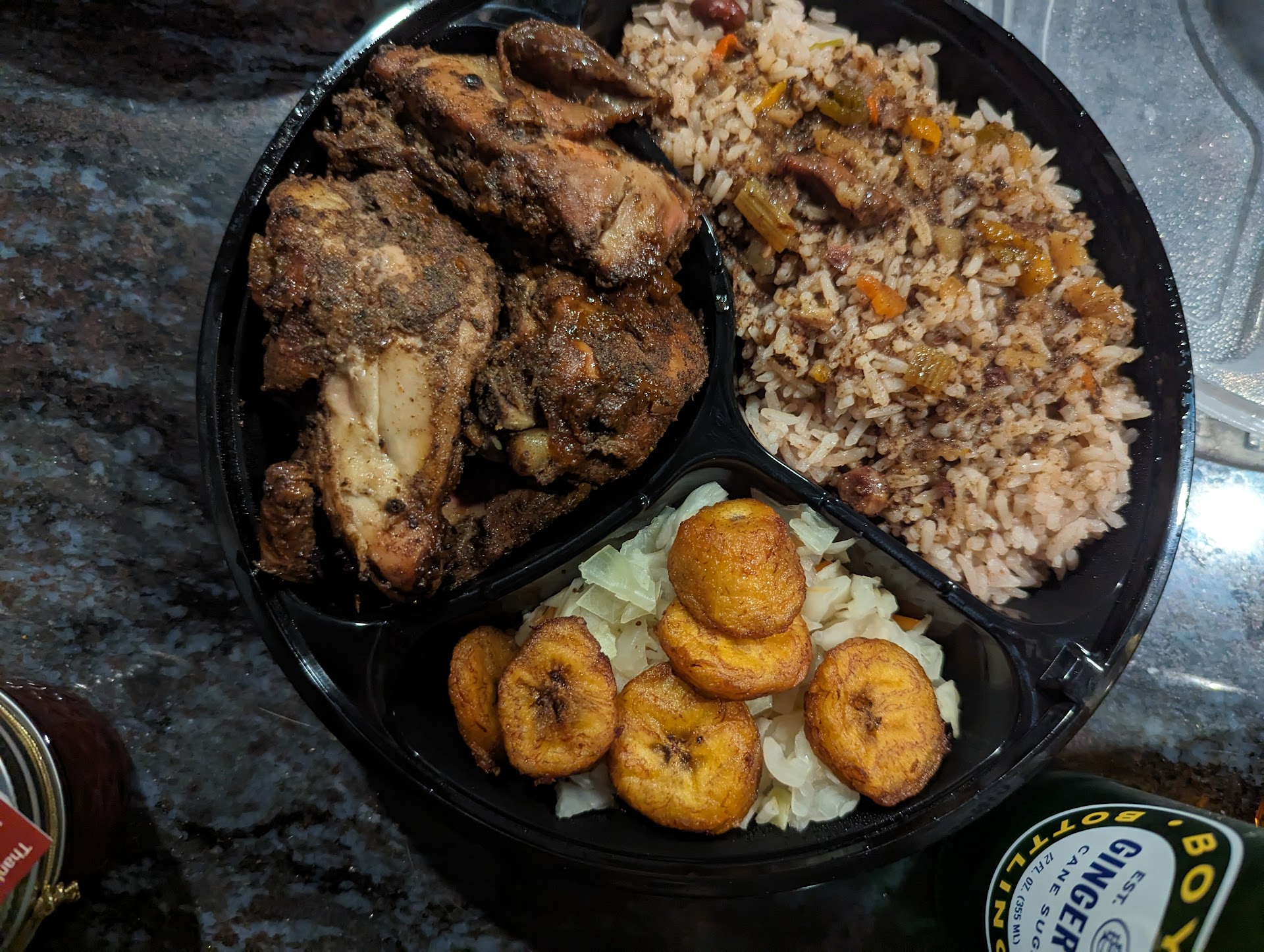 The side of plantain was typical of what I'm seeing with most Caribbean restaurants but they all need to cut it out. The plantain is NOT ripe enough for cooking. It hard and barely sweet. You gotta let plantain get a little over ripe before you fry them up. The sugar content is the highest will caramelize. The parts where it is burnt should have an almost candy like crust. But, in comparison to what I'm finding.. it's on par with other restaurants, unfortunately.