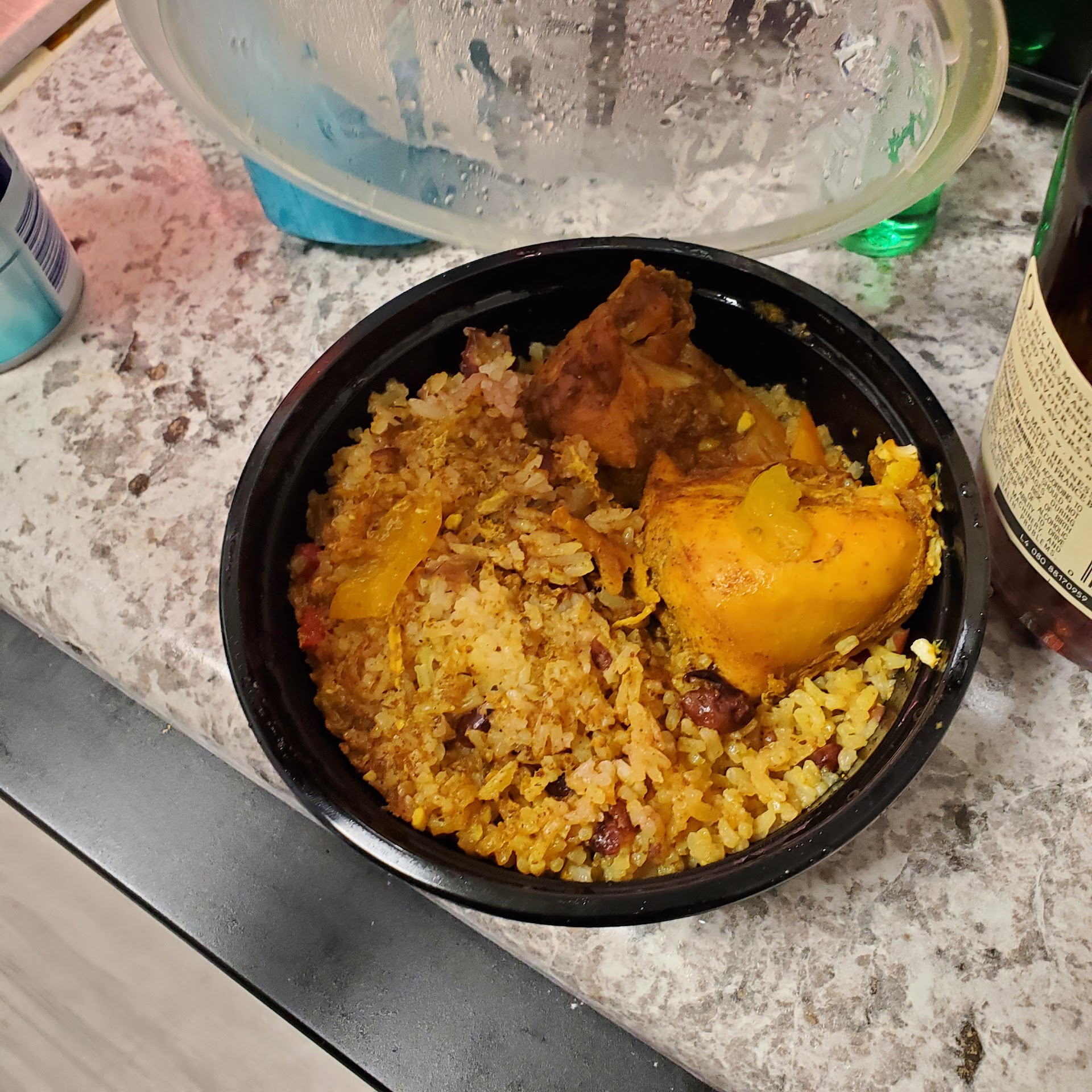 The curry chicken w/white rice. I would call that curry-ish chicken because it look like they sprinkle the curry it so "lightskin". I can't tell you about the white rice because they put the same rice & peas. I appreciate the "upgrade" b..b..b..BUT.. imagine how my gf felt, during her monthly visit, hormones raging, and all she wanted was white rice with her curry chicken. I dealt with a lot.