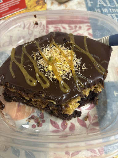 For my first visit, I went with a slice of Dubai chocolate cake and a white chocolate peanut butter cookie. The cake was rich and chocolatey with a nice crunch, but at $7/slice, I’ll probably go with a less extravagant flavor next time. The cookie ($3.50) was a standout: moist and chewy without falling apart. White chocolate and peanut butter proved to be an underrated combination.