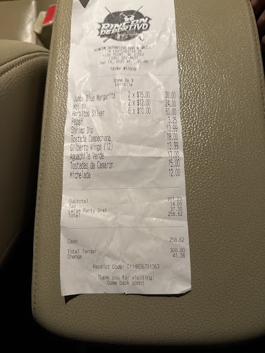 Read moreWent to rincon for the canelo fight and it was 4 of us on the original copy of the receipt there was not large party fee added so we gave the waitress 60$ then to find out on the other copy she handed after we paid that a gratitude for large party was added. Honestly a scam the waitress wasnât really checking on us we had to waived her down. Then asking the owner about the charge he said there was a fee for a fight. Might as well had a sign that stated you will be charged a fee for the fight. Instead he was there with a waitress just chatting it up who we found out is going out with. Very unprofessional...