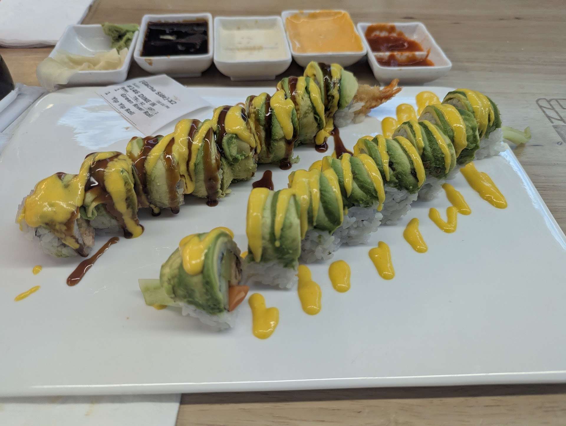 I liked that you could order rolls, as some I wanted were not on the belt. But the rolls took long to arrive. It took over 30 minutes for our order of 3 rolls to come. 2 rolls were good, and one was inedible. We actually saw an order arrive to an empty table, since I guess the order took so long that the people left lol. A few things I ordered never arrived to the table at all.