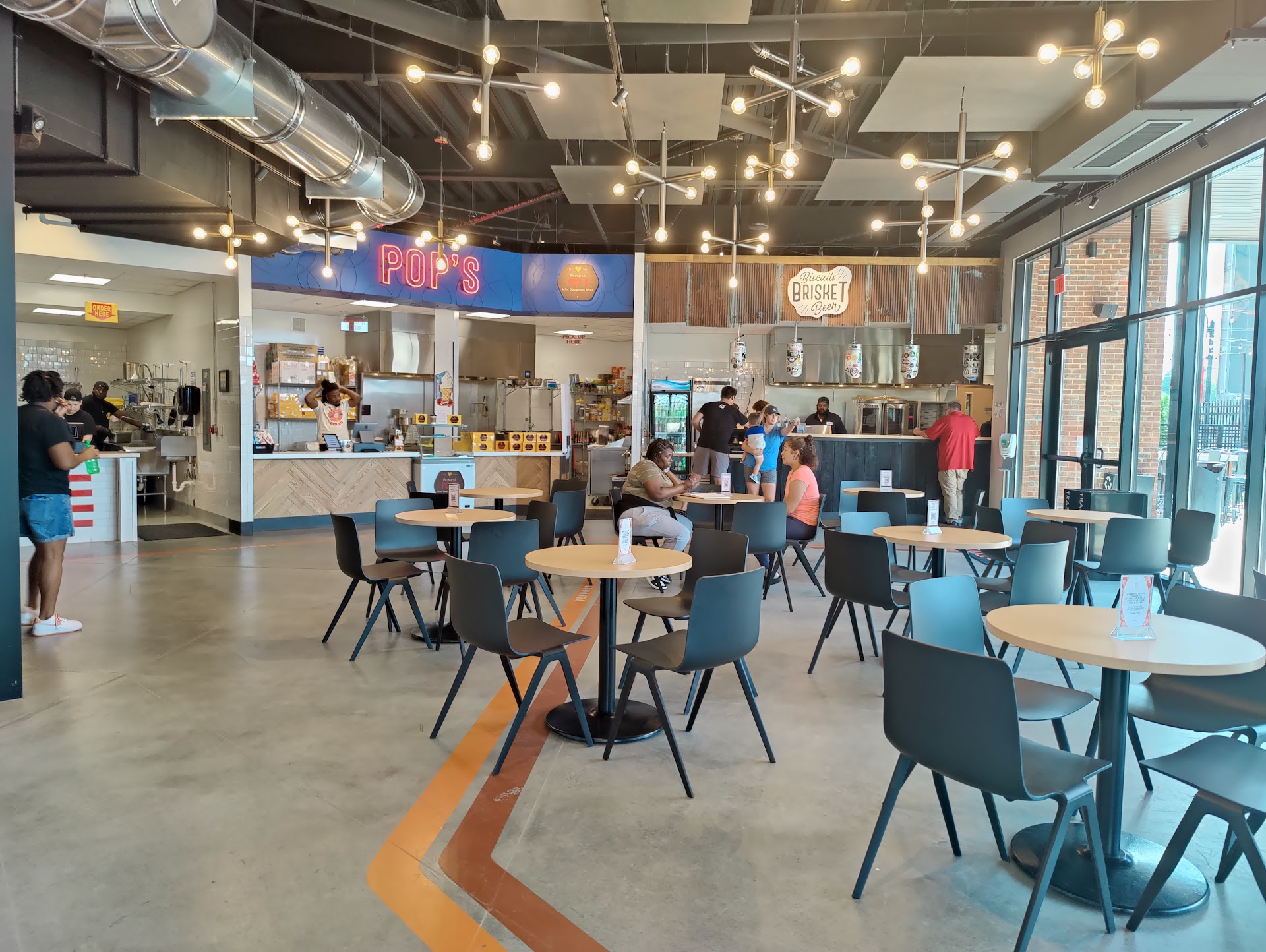 Read moreHigh Points newest food stop if the Stock and Grain Food Hall located on Elm. If you are on Main, TURN down Church AVE...and it is RIGHT there in front of you. Hopefully one day the City of High Point will get some sort of signage up there to let people know about the Food Hall. It is located just outside one of the entry gates of Truist Point Stadium ....home of the High Point Rockers. The parking lot does need some attention....IE ladies watch your heels and fellas...dont wear your good shoes.... if it is a rainy day....... anyway...... there are quite a few great options within the building.... there's a bar... the BEVERLY.....a coffee shop...MESSAGE COFFEE......a spot for sushi... YUMI..... want good diner comfort food....hit up DAMN GOOD DOGS.....maybe ya want some brisket...... hit up BRISKET, BISCUITS AND BEER..... and when you are ready for something sweet......... POPS MINI DOUGHNUTS are...