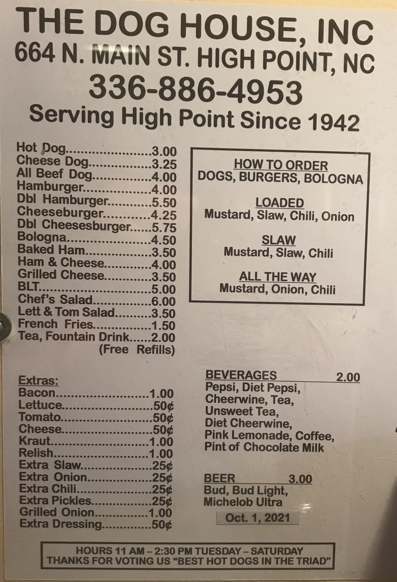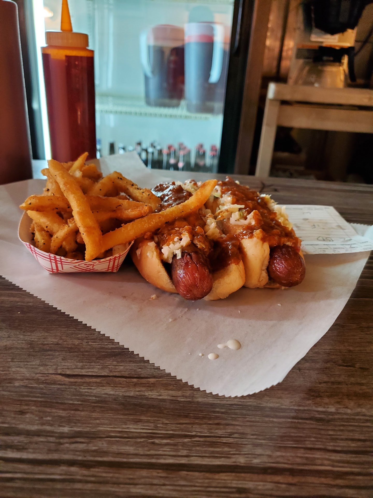 Read moreI visited this establishment on a Saturday afternoon at about 1pm. There was a light crowd of people with only a few staff members working in the kitchen. I ordered 2 hotdogs with mustard, ketchup, chili and Cole slaw and French Fries. The chili was rather delicious in flavor and the Cole slaw was quite delightful with a flavor similar to KFC's. The hotdog was made of beef, reddish in color and the outside texture was roasted. The hotdog had a snap to it once bitten into like you would experience while eating a NYC Nathan's dog, except The Dog House's hot dogs are way thicker. The staff was generally friendly upon arrival and asked me if I enjoyed my meal upon departure. I found the customer service to be exceptional and highly recommend this spot to locals and visitors...