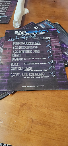I visited Bad Bennyâs Pour House at 2âŻp.m. with my grandma for her birthday, along with my sister and daughter. We were seated and served by Tom H., and we ordered from the lunch menu: the Half âSlimmer Janeâ sandwich with French onion soup for my grandma and me (\$7 each), and boneless wingsâBuffalo for my sister and BBQ (on the side) for my daughter. We also requested ranch dressing.