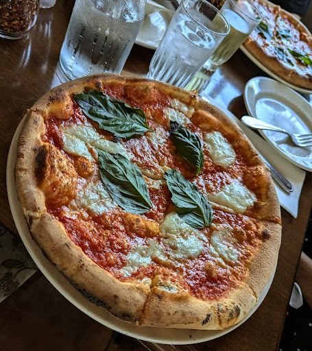 We also ordered the Margareta pizza with sausage. The tomato sauce on the pie was so bland. The best bite for me was when I ate a whole basil leaf on the slice. I think the only thing we had eaten that had any seasoning to it was the pizza crust, and I thought it was almost too salty. It was almost like the salt shaker fell into the dough mixer and they didn't have any left over for the other dishes.