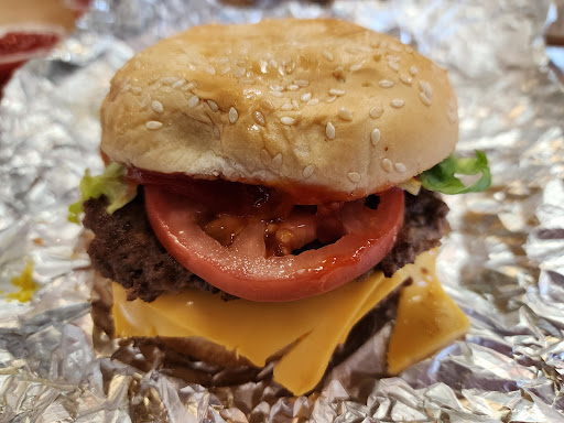 Read moreIf you leave here hungry, you're doing it wrong! The atmosphere is fun with its red and white color scheme. The restaurant was clean. They have tall and short tables. The staff is friendly. Our wait time was very short. There were peanuts to snack on, but we didn't wait long enough to need them. Our burgers, with their huge number of topping choices, were absolutely yummy! They're huge, too. I love that I can get grilled onions and mushrooms. No extra charge! We opted to share a large order of the fresh cut fries. There are so many and they taste so good! You can choose from the self-serve fountain machine or bottled soda. Five Guys also...