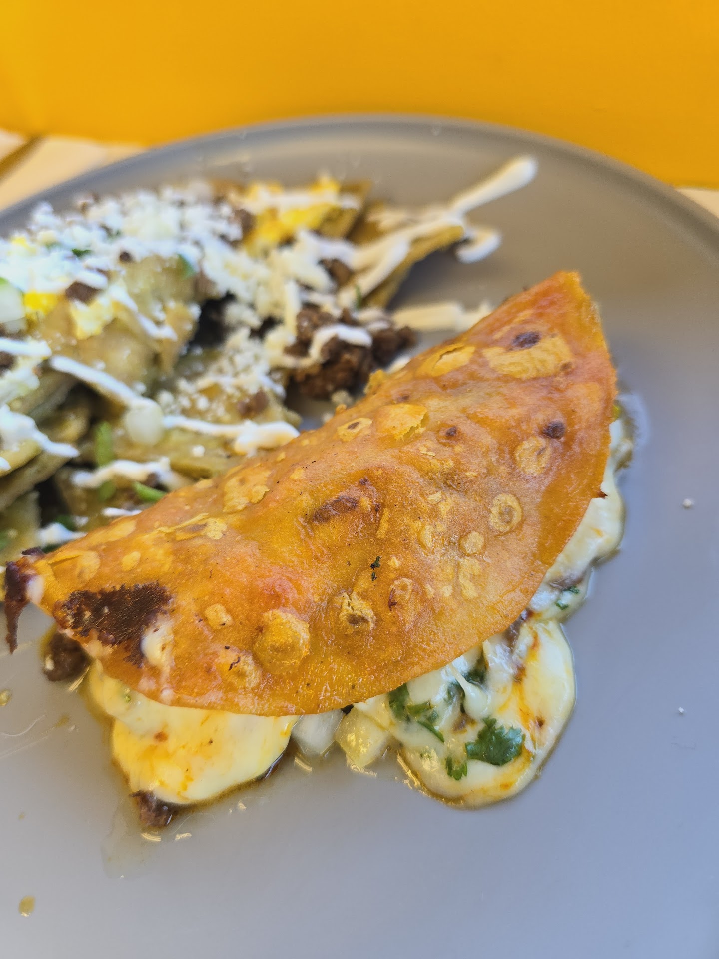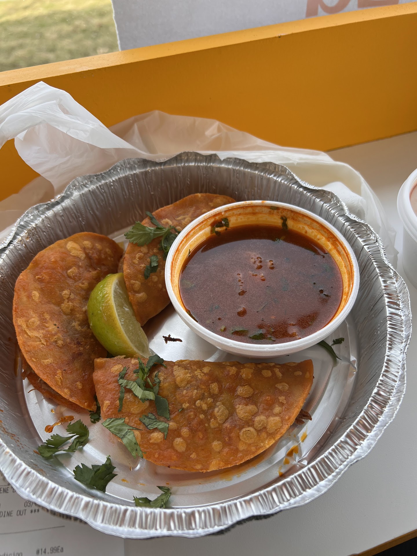 I got the Birria (no cheese because lactose intolerant) with consomé. It was very delicious and came out quickly after ordering. I also had chips and guac which were delicious as well. I think the consome wasn’t as flavorful as I’ve had other in sort of a deeper broth flavor but was still yummy enough that I ordered a side of just consome.