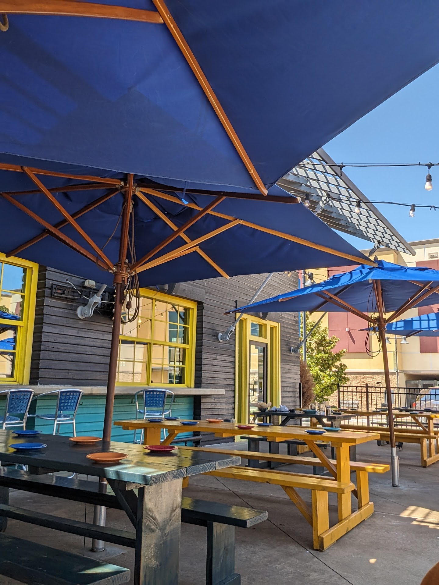 My wife and I had been visiting a friend in the neighborhood and talked a little too long... such that the restaurant where we'd planned to eat had closed already by the time we left at 9:20 pm on a Wednesday night. We were certain that we would no longer find a nice place to dine at that hour. But, after searching Google we discovered that the Blue Goose Cantina was open until 10:30 pm.