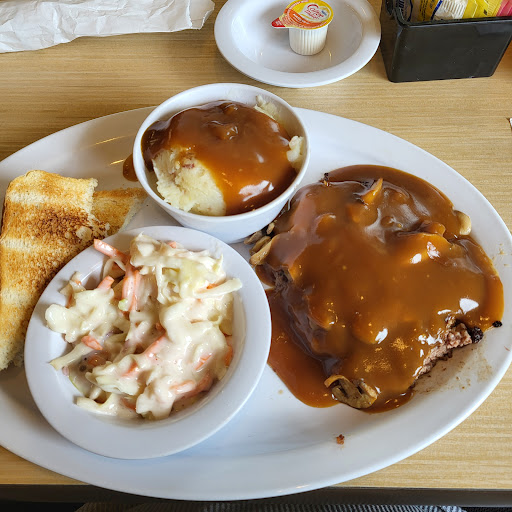 Read moreI've been sleeping on this place far too long thinking it was mostly a breakfast place. I heard a radio add for the burger and was in the mood for a burger that night. I was not really hungry but was thinking this would be some whimpy little BK, McD's, Har. Burger so I decided to get the triple cheeseburger 🍔 my wife got the single. I'm a big guy and when the server was walking across the floor with the food it got attention of everyone in there it looked like a eating challenge this thing had to be 4"tall I had to eat from the middle to the top than the middle to bottom and the burger is delicious!! If you're in Highland and want a burger this in now 100% my go to for a great burger and cost less than all the other big name chains. Pictures from later date where I went back to get a double cheeseburger. The fries I also really like the service is good and fast I highly...