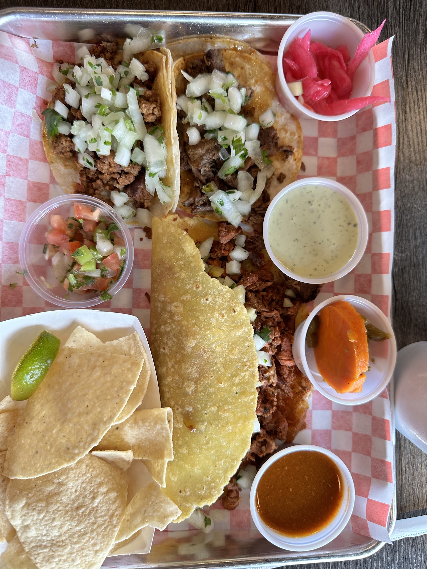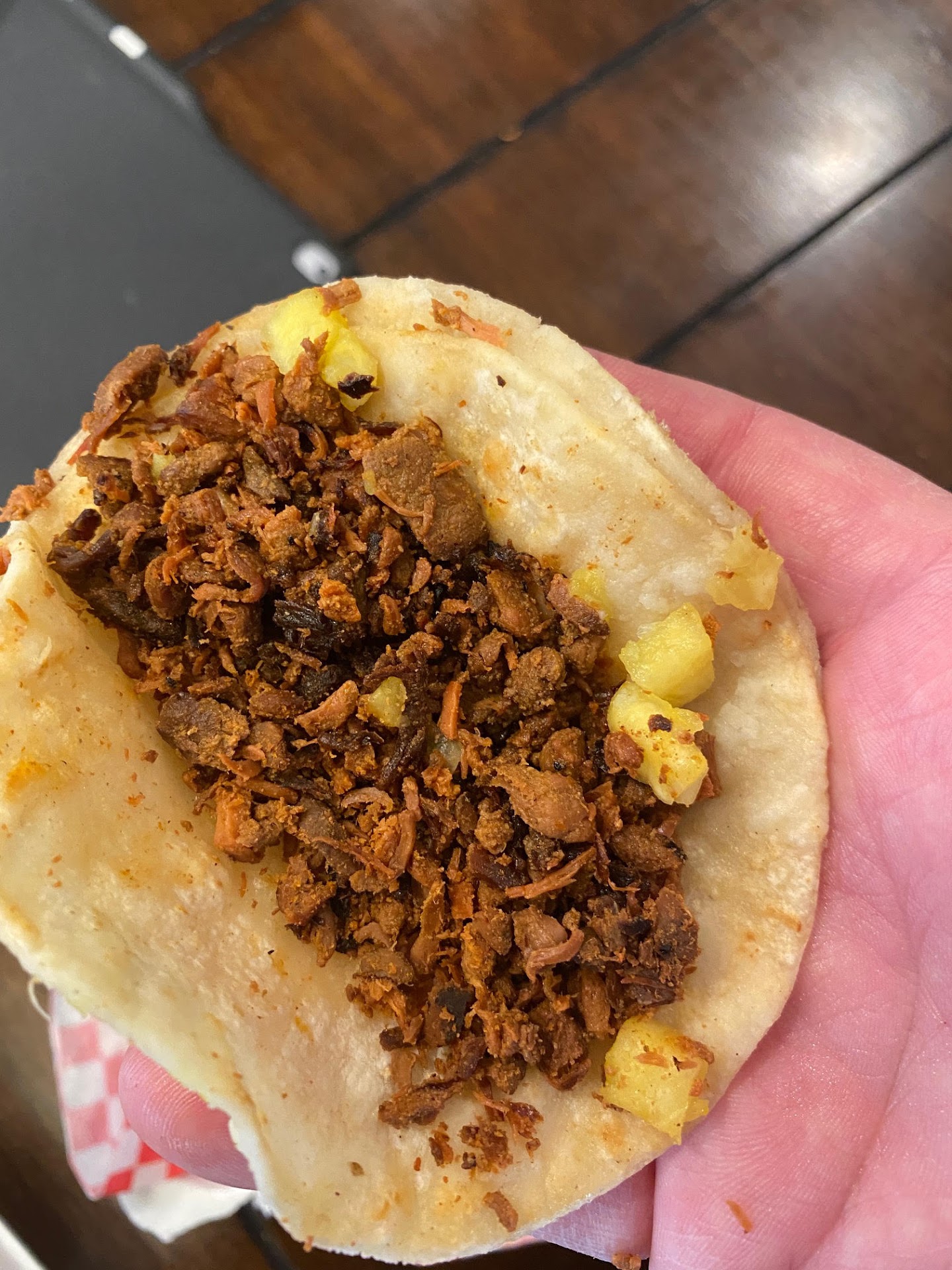 Read morePricey and tasted horrible! We made a take-out order and took it home.. The meat (Al pastor) was extremely burnt or reheated way too many times (see pics), that is not how fresh Al Pastor should look, not even close. Then they try to re-hydrate it with a ton of pineapple juice..? Not sure, but it was horrible. The first time we ate hear the food was ok, so we decided to try it again etc. Second time was a mistake! After spending $55+ very disappointed this time. Bummer! We were excited that a different Taco Shop was new to the area! Because we love Mexican food and Tacos! I guess we have to wait a while and see if they get the issues/everything ironed out.. We never leave reviews, but we could not believe how bad the meat was, so we had...