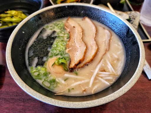 Delicious ramen and fantastic service. I've become obsessed with ramen as of late, but haven't found a place that really has impressed me; until today. I've been hearing about RamenKoKo since we moved to Highland about a year ago and finally followed up to the claims today. The place is a small, inviting restaurant with only a handful of tables and mostly American movie posters from Japan lining the walls. It's charming and the staff greeted us immediately. The menu is small and easy to figure out, which is great for me as im still new to japanese food, but is full of intriguing dishes and appetizers. We orders edamame and gyoza to start. The gyoza was perfectly cooked and didn't disappoint and the edamame came coated in a garlic chili paste that was so good I could eat it by itself with a spoon. My wife got a garlic pork rice bowl and I ordered the spicy tonkatsu ramen. I love pork and have been wanting to try real tonkatsu ramen since learning about it last year (thanks to Mike Chen on YouTube) I also ordered some miso broth as I have never had it and really wanted to try it. The rice bowl was good, slightly sweet and the pork was great. The miso broth impressed me and was super salty and delicious. The star of the show was my tonkatsu ramen. The broth is so rich and flavorful and is only improved when you add the chili paste to the broth. The pork belly on top was crazy good and once you dive into this dish you don't want to stop until your sniffling and full. The spice level was perfect and I truly cannot describe how tasty the broth is. I tried the thin noodles and they were good, but they have other options and I'll be trying those next time. I can't forget about the service and staff too. They were all so polite and attentive and helpful that it makes you appreciate the people who take their jobs seriously and provide that kind of service. Overall, great experience with fantastic food and service. I cannot wait to go back and eat through the rest...