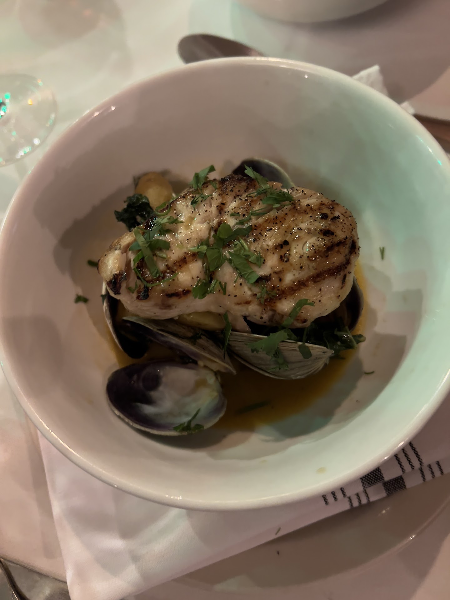 Read moreThis was our first time dining at this new (5 weeks young) restaurant but it won’t be our last! There were two stars that shined bright tonight: the food, and the head server Michael. The food was inventive and beautifully presented. We started with the complimentary olives, roasted garlic, caper berries, olive oil, and bread. The quality of the olive oil was very good and the roasted garlic was creamy and complimented the bread perfectly. The pitted olives were large and had a mild brine to them. Our first course consisted of the grilled octopus and the watermelon, feta, and iberico ham. The octopus had a nice char which gave it a rich flavor. The sweetness of the watermelon complemented the saltiness of the feta and ham. The feta had a rich flavor. It was obviously of high quality. The entrees were all superb. I did not taste the swordfish but our friend really enjoyed it. It was served over kale, garlic confit, clams, chorizo, fennel, and potato in a rich broth. Two of us had the honey lavender roasted duck breast, which was served with brussels sprouts, mushroom, leeks, sunchokes, and tomato. It was tender and was a huge hit. The fourth entree consisted of a duo of perfectly cooked and seasoned pistachio crusted double lamb chops. It came with a flavorful pearled couscous with dried fruit and exotic spices. I could taste the Moorish influences. We ended the meal on a high note with two desserts: a fall spiced crème brûlée and a rich deep chocolate flourless cake topped with crystallized orange with fresh strawberries and blueberries. The service was sublime. Michael was passionate about making sure we all were happy with every aspect of the food and service. I enjoyed his personality and appreciated his recommendations. We look forward to our next Bistro Iberia experience! Highly...