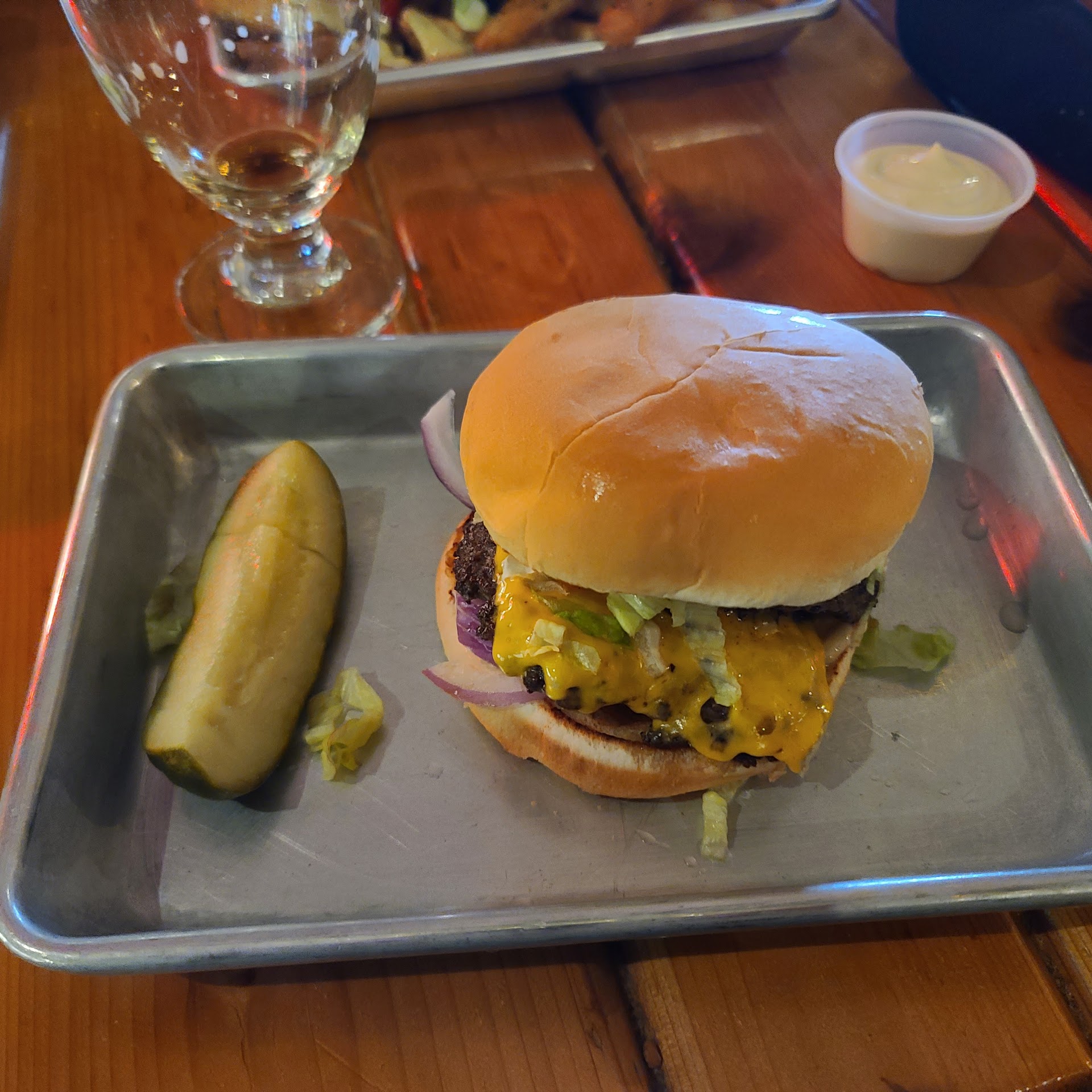 ....I may be wrong (and I truly hope I am), but the last three times I've been here the food has taken a serious downturn. Don't get me wrong, it's still good, but a wedge salad shouldn't just be a half wedge of iceberg lettuce - especially when advertised as more. Last three times I ordered this (again, hoping it was just a single occurrence) I got the lettuce but that's about it. The bacon crumbles likely equate to about ¼ strip of bacon, the onion is about 3 small rings (no, not slices...just single rings) and four halves of cherry tomatoes (yes, for those doing the math that means just two cherry tomatoes).
