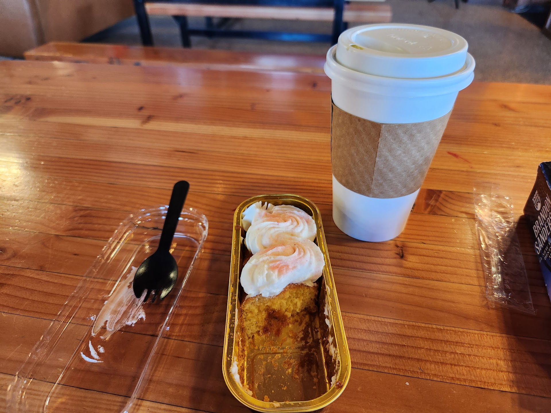 In thanks due to their generosity, I purchased another of said coconut (cup)cakes, as well as a savory Pão de queijo cheese bun, something much more my speed, as I have almost a negative sweet tooth. Of course, my son (and wife, for that matter) had some of that as well, but hey, fatherhood is all about sacrifices, am I right?