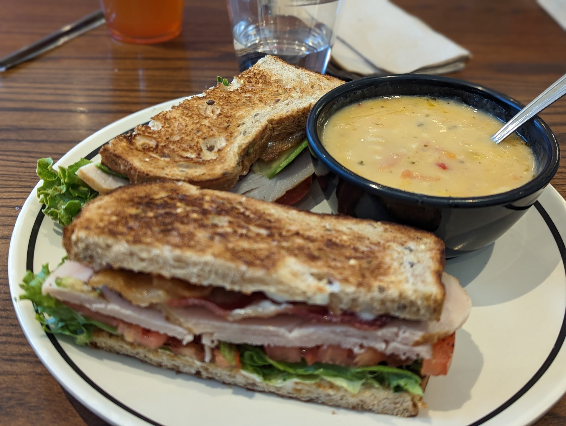 My first time here and Iām very disappointed the girl that waited on Me with a ponytail red hair needs to get an attitude adjustment. No smile no personality. Why is she there? She looked like what do you want? I just donāt wanna be here. Thatās what her face look like she ruined my lunchā¦.. I asked for the Choose two I said clearly I wanted the uptown, avocado, turkey, and the cheddar broccoli soupā¦. Then she said what do you want for your side? I said my soup is my side says would you like a salad? OK I guess that included it. She charged me extra for it. She shouldāve told me that. So when she finally brought me, the food still no smile on her face just kind of threw the plate on the table caught me off guard⦠Then I tasted the soup which was at BEST lukewarm so I took it back up to the counter and very nicely. Ask her if she could warm this up. She took it out of my hand and put it in the microwave. I waited for a few minutes her to beep. She wasnāt even looking at my direction, so I turned around and went back to finish my, finally brought the soup over didnāt say a word. Just kind of put it on the tableā¦. nothing like I hope itās warm enough now just nothing. I mean she shouldnāt be a waitress. Iām sorry her attitude and her personality show that she does not want to be there so your best bet if you want returning customers and let her go or put her in the kitchen here doing dishes away from your customersā¦..