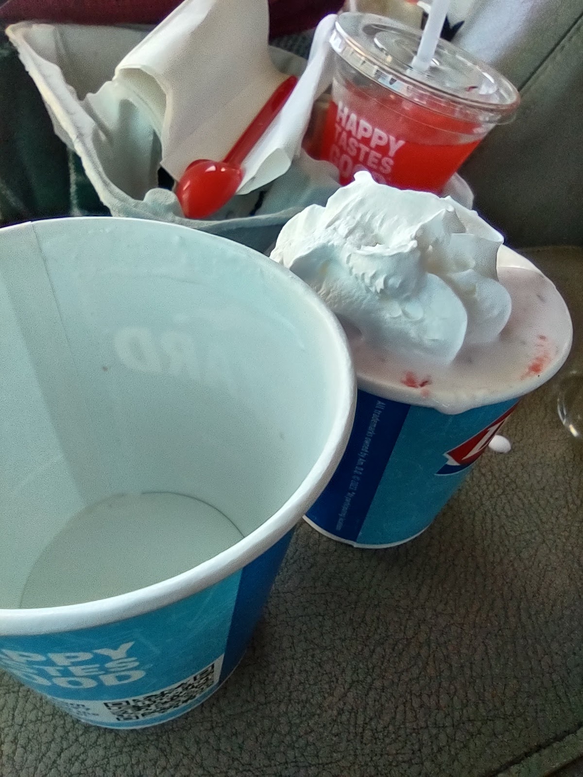 Gravy - cold again Plain cheeseburger kids meal - cheeseburger not plain, bun is hard Blizzard - pretty much a milkshake. Aren't they supposed to flip it over to show you how thick it is? Iced tea - still included the tea (see the included picture). Not a pleasant thing to take a mouthful of.