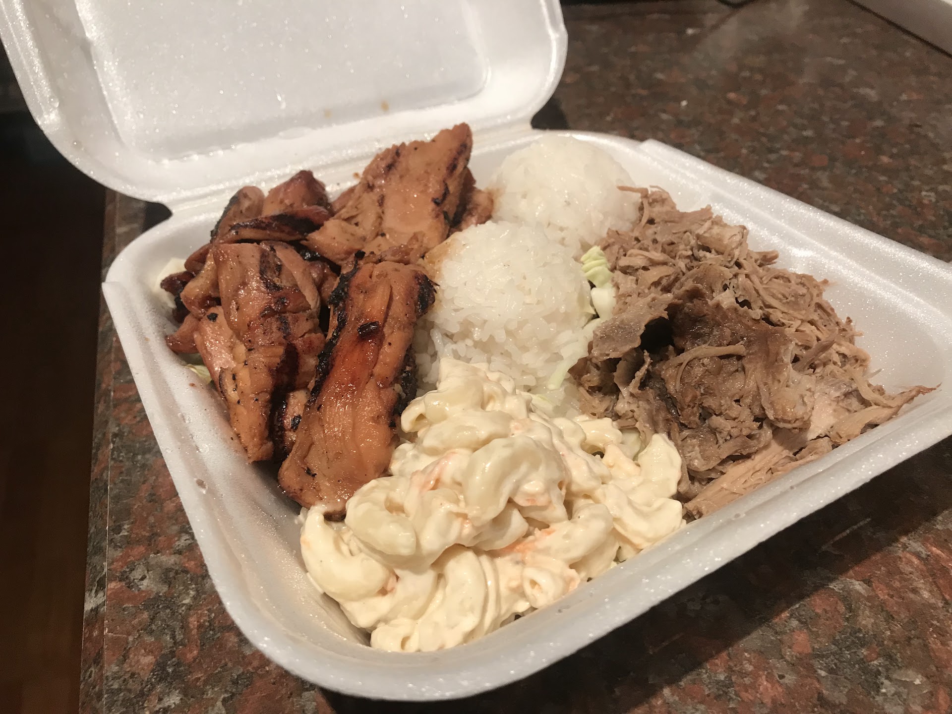 Read moreThis place is disgusting! Don't waste your time or money. The food is gross, the Mac salad has an old, foul, fish raste to it & the meat tastes like its just dunked in smoke flavoring. The seating area is filthy, droppings of food are all around the floor. The tables feel sticky like they're never sanitized & the area where you get your drinks has dried spashes of soda all around. Layers of dirt & grease line the ceiling & fixtures. It's just a nasty joint that shouldn't be allowed to serve food to people. The staff is unfriendly as well, no warm greeting or attempt to explain menu options when asked. Very dry & responses with simple ya and pointing. Not to mention the price for the poor quality of food is unreasonable. I could go on but this should get my...