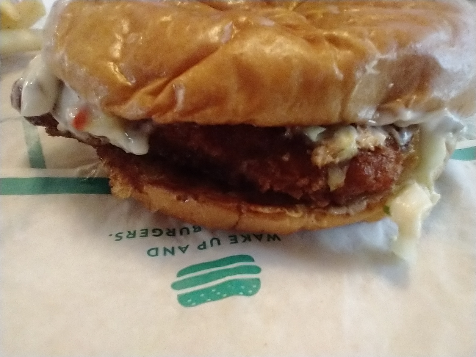 Burger was moist, hot, and plenty of sauce. It's about the same size as McDonald's burgers but the bun makes up for the volume . I like it better than the typical sesame seed bun.