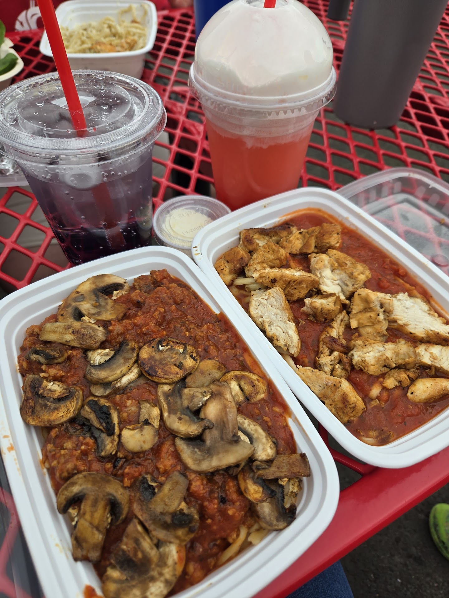 But the pasta & sauce was so gross. They used linguini noodles and they were super soft/soggy and the alfredo sauce was very bland and so thick. That mixed with the overly soft noodles made it almost gluey. I tried to eat it but the gluey texture was just too much. Took a few bites and threw it away :( I love alfredo and was excited for a food truck that served pasta but I won’t be back.