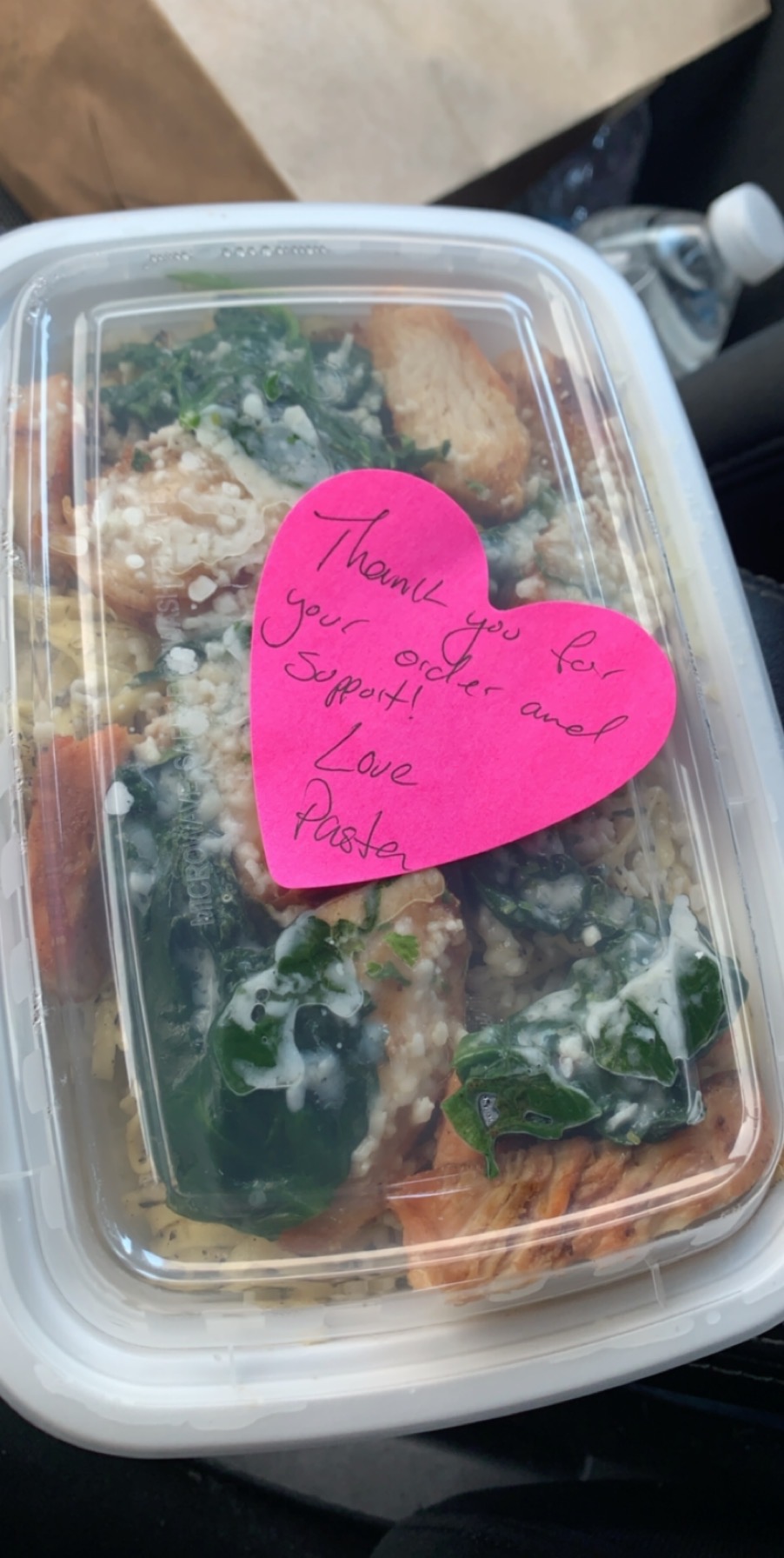 The note that they put on top of the to-go container is super cute. From the name and that note, you'd expect the pasta to be made with love. Fortunately, I was not disappointed. You can taste the care they put into the food. The noodles are evidently fresh as are the rest of their ingredients. I thought the grilled chicken was nicely salty. I ordered the cacio e pepe sauce because I was craving something light, and despite essentially only having just the sprinkled cheese and plentiful pepper as the flavor, it was super tasty. It would have tasted better if I had ordered it from the restaurant and it wasn't jam-packed into a little container (as is the case for all pasta), but despite that issue that comes with delivery, it was fantastic.