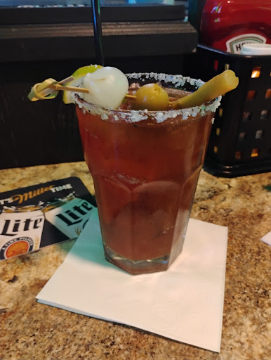 You'd be surprised to know I was expecting this to be just another rundown bar. First as soon as the door is open, I was greeted with a warm welcome by the staff working there. My date and I went for our chairs, and saw that this place had a award-winning bloody Mary plaque on the wall. We had to get that, I had to try it. I was blown away. We ordered stuffed potatoes, and I finally got a chance to find out what poutini was.
