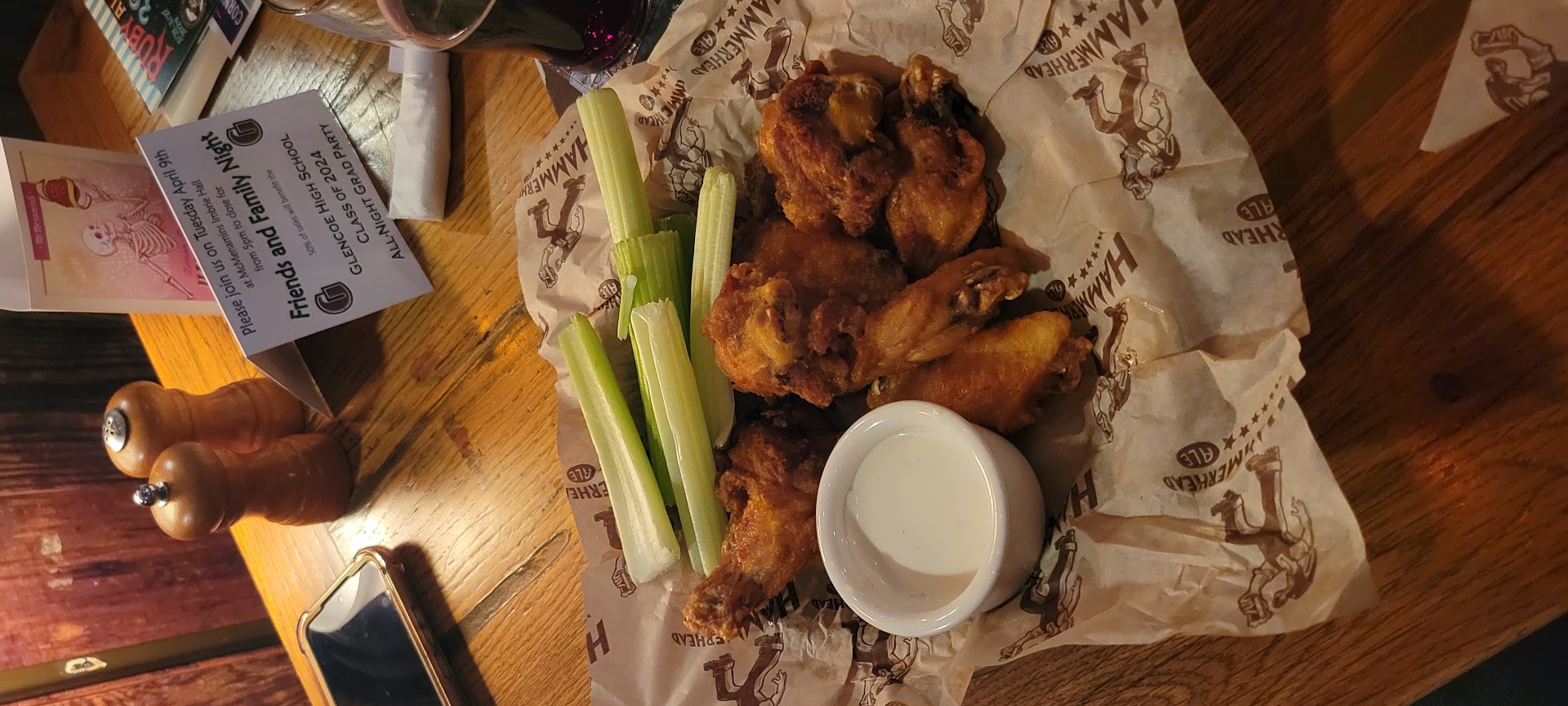 Service was decent, nothing special, to be honest. Just a quick exchange of words, lol. Food took a little longer than expected. I ordered the fish n chips. ( One of their specialties ) for 23$. I was hoping for more than 2 pieces of fish. Tried the French 🍟... they were really soft. My guess is they use the frozen ones. The sabertooth hot wings were, however, absolutely perfect, was a good-sized portion. Once food came, we never saw the server again. Didn't come back to check our drinks or ask if the food was okay. ( it wasn't busy )