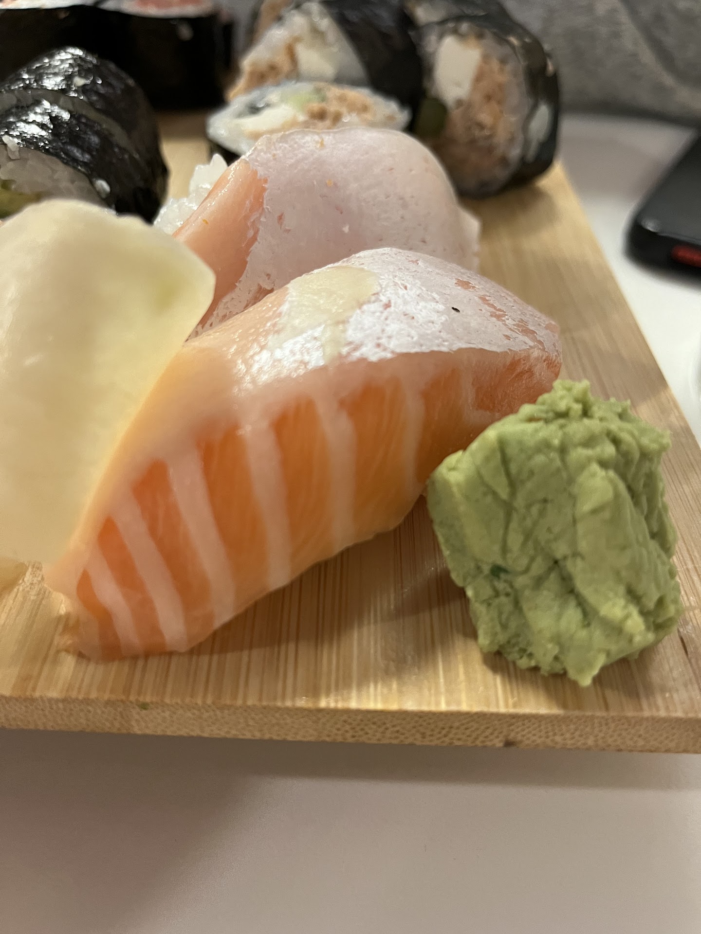 You need to do something with your baked scallop roll, or decrease the price for it. It's basically a California roll, but you put a couple of very small, tiny pieces of scallops on top of it and you make it look like a real scallop roll and charge like a real scallop roll. Don't do that, please. It needs to be a bigger piece of scallops without any cheap crab imitation meat. For salmon sushi, you use the last piece of the salmon, which is not suitable for sushi. If you don't have enough salmon, or any other fish that a customer orders, just tell the customer you don't have it, but don't use the last piece that really looks like the last piece of the entire salmon. You are the new guys. You have a lot of competition right next to you. Please respect your customers and make every piece of sushi as if you were making it for your Boss or his family. For now I will give you only 2 stars, but I will check it later with you, and if you fix the problems that I mentioned, I will fix my rating and will share it with my friends. For now, sorry, but you are far away...