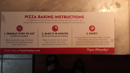 Read moreFor the second time in a row I ordered online with a pickup window of a half hour. Arrived a couple minutes after that time with nothing on the pickup shelves. Waited while another customerâs order was being finished. As I was waiting, four people arrived. The one employee working asked the other employee (who was in the back) to help. The other guy said he needed his âmunchiesâ and didnât come out to help. It took 45 minutes from the time of order. I asked if they wait until the online order person shows up to start the order. The response was exactly the same as the first time. âWe had a rush and need to do walk-in orders firstâ. Even tho there was only one person in the store when I arrived. And Papa Murphyâs has the audacity to ask for a tip at...