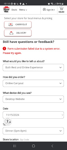 Read moreI'm still waiting on my refund from 11/15/2024 for $46.50. I normally wouldn't give such a review, but I've tried waiting as advised by the store, corporate tells you to go online and when you go online I always get an system error message. Then the cycle continues. On 11/15/24 ordered online at about 6:15pm. Came to pick up and it was delayed by a whole hour. I know things happened so I patently waited. Then I'm seeing there's just a few of us left and it's been over an hour and noone is working on orders. So I asked the manager what was going on. He looks and then eventually goes somewhere. Then he is just standing around. I said, "Did you lose my order?" It was obvious it wasn't being made. So then he just disappeared off the floor. Then a very nice associate told me she found my order and will make it now and will process a refund for me. I thanked her and said I could tell something was wrong. Some orders were duplicated somehow, and that's how some were missed. I was not out of that store until 8:20pm! The manager that night seemed to want to run away from the problem. I will continue to use that location because I know this is not an everyday occurrence. However, I'd like my refund...