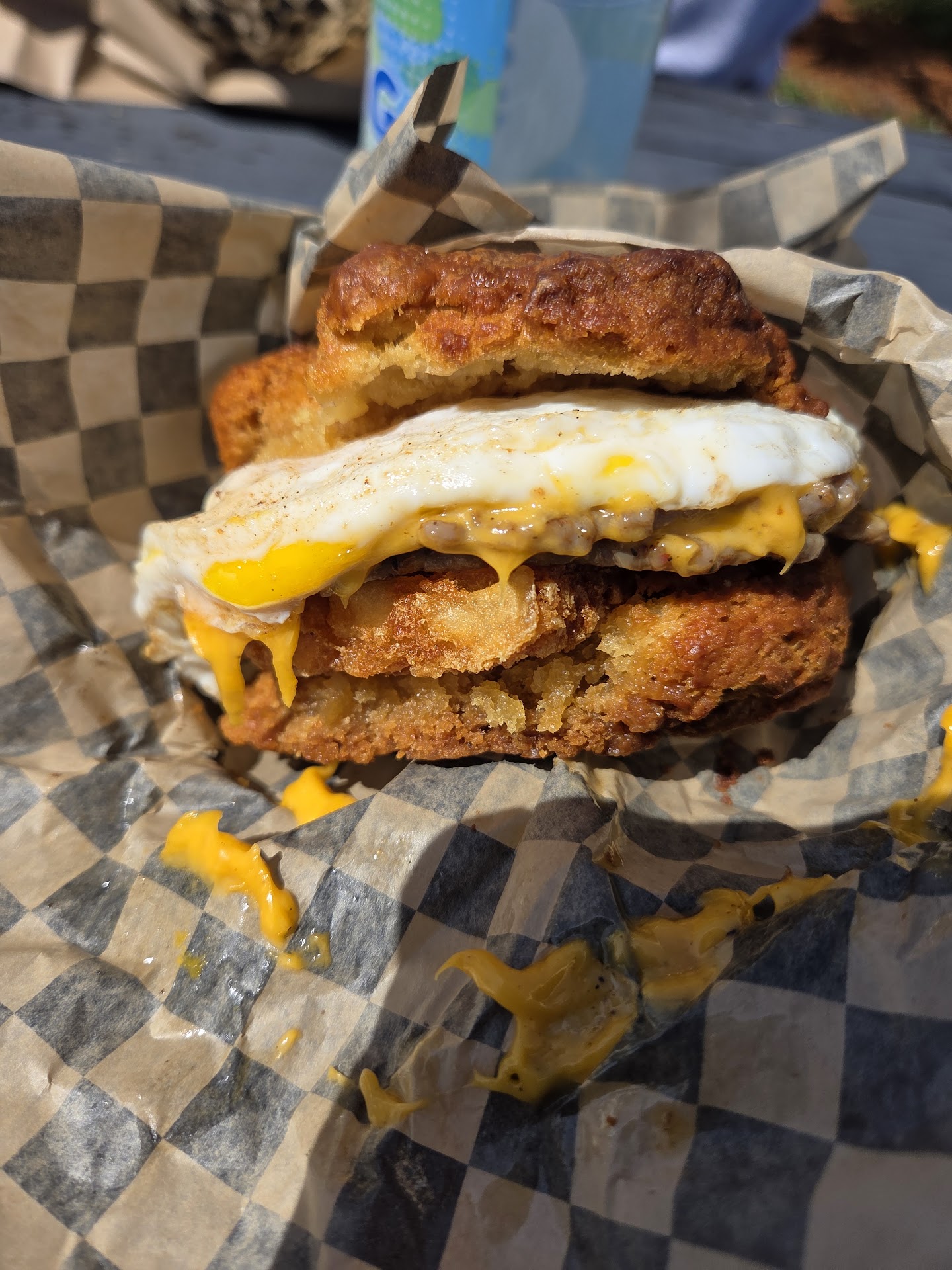 Hidden or Secret Gem indeed. Read the reviews and had to give it a try. 5Stars indeed. The service was super friendly. Love the homemade sausages and they get smashed, heck yesss! We tried (1) The Fave with homemade biscuit and substituted for Pepperjack cheese. And (1)The Fave on a bagel and substituted for pepperjack cheese. Both were great!! The Homemade biscuit The Fave was so delicious! And that pepperjack cheese 🤤 was so good! Definitely recommend getting there early as we could not order (2)The Faves with Homemade Biscuits. We also tried their sugar cinnamon donut sample, it was SO delicious we had to order one. Note, we also took the food home. 15min drive, the food was warm and still tasted great! We will definitely be going back again n again. I highly recommend this hidden gem...