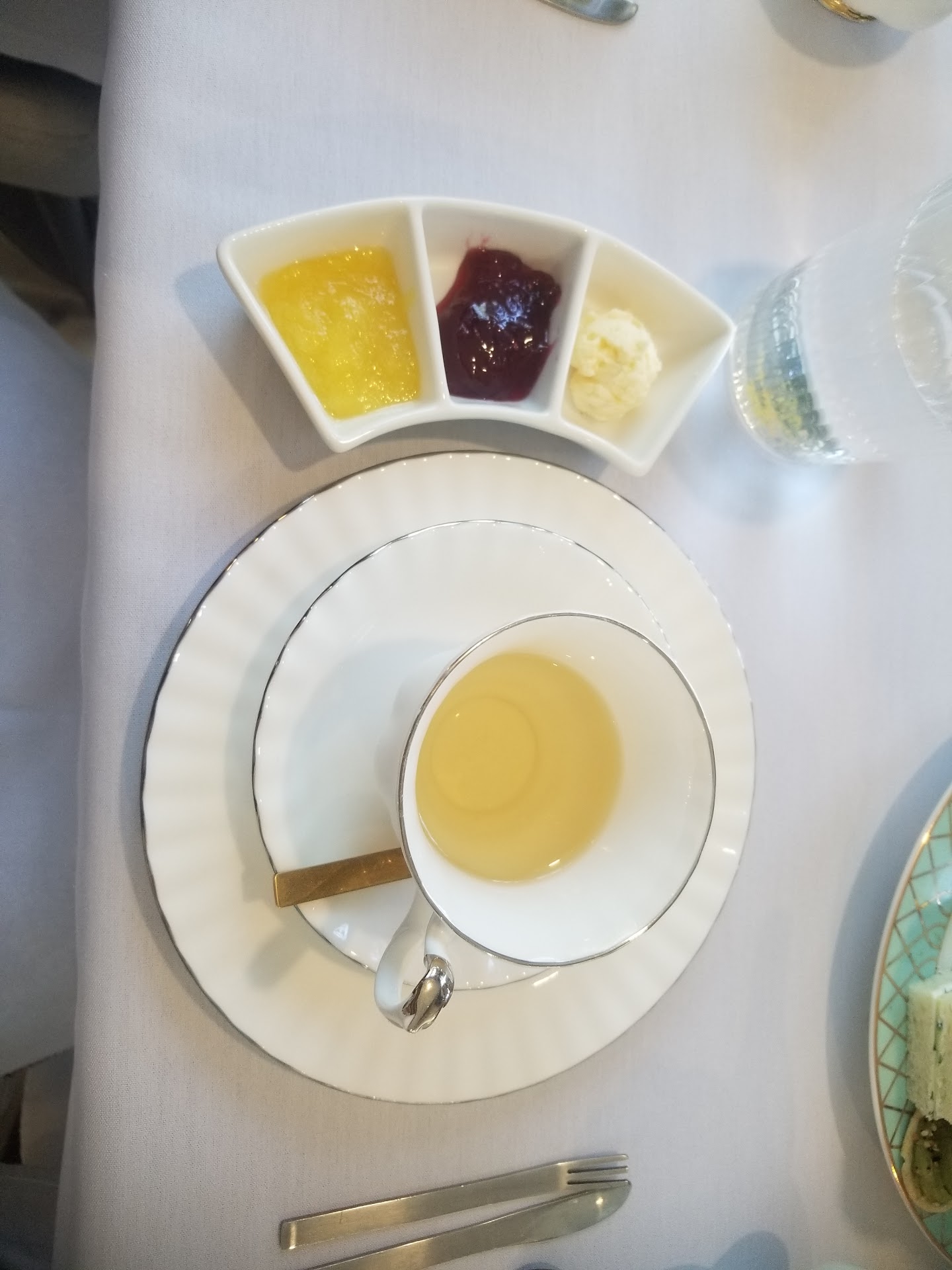 The tea selection was an element of this visit we were so looking forward to. It's expansive and delightfully descriptive - so much to choose from! The sandwiches were fresh, the ingredients just perfect, a savory cracker with salmon was a nice touch, and the desserts, were of course, luscious. and plentiful. I particularly liked the sweet touch provided by a condiment dish lemon custard, clotted cream and raspberry preserves - really only served in the most "proper" tea rooms.