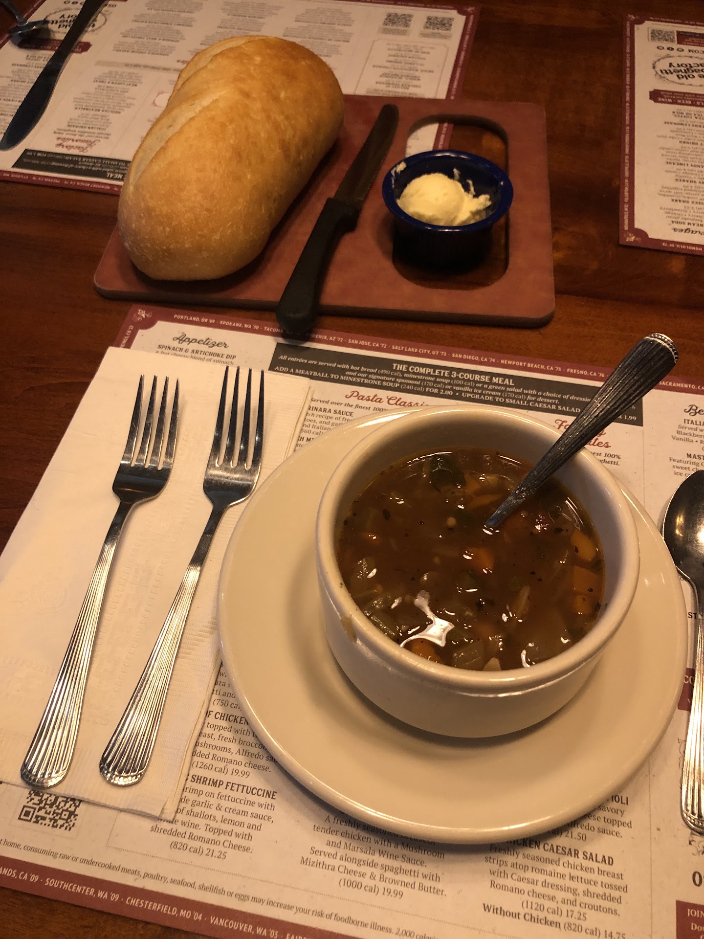 Read moreIt's been a few years since we've eaten a meal from The Old Spaghetti Factory. Now I recall the reasons why we have not ordered, set up family get togethers, celebratory meals at OSF. The pricing has gone through the roof, the quality/taste of the food has dramatically decreased, while quantity and amount of cheese also decreased. We ordered 3 manager's favorite entrées at ~$23 per for the hearty size ($3.99 adder). The meals come with 2 loaves of sourdough bread, butter, salad or soup, and a small scoop of Spumoni ice cream. Assuming that they have this process down pat so I didn't check the pickup order and drove home (25 minutes away). Come to find out 2 of the meals are missing the salads. Had all the 3 salad dressing and ice cream but missing 2 salads. So the mask started damper, one of my pet peeves. So I called OSF and spoke to a manager who was courteous but only offered to refund the value of the 2 salads. I have him plenty of opportunities to outdone his customer service prowess. He had the nerve to ask whether I want to drive back to pick up the salads after I told him I was 25 minutes away. Has no clue that's a 50 minutes drive proposition at $5 per gallon of gas. Needless, I said goodbye and hung up. Sad state of affairs for restaurants these days. I know this. After many years of dining at OSF with my 3 boys and their vast teams for basketball and baseball over the years, I, as a coach and a sports official, will never suggest OSF for any meals when it is very evident that the value for the meals are not in the interest for the company. They've lost track of their core customer base...
