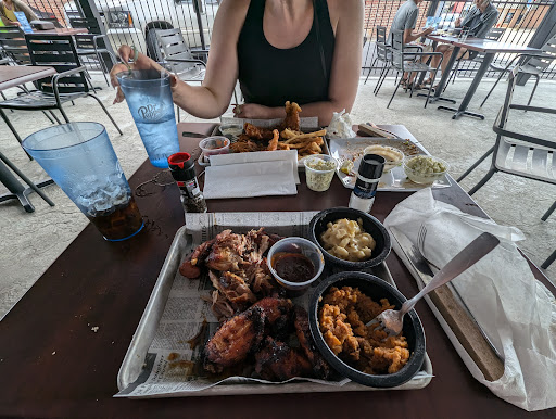 Read moreThis is my first ever negative review of a restaurant, or rather the first negative experience I felt was worth leaving an actual review over. Our first time dining here mind you. We attempt to start with appetizers. "Can we get the cheese sticks?" "Were out" "Can we get the smoked deviled eggs?" "Were out" "Let's try the pretzal?" "Were out" "Potato skins?" (Finally picked a winner) He orders the brisket plate that comes with cornbread, slaw and two sides. Orders broccoli as one side "were out". Leaves it at one side bc honestly who wants to keep playing this game at this point? Yes, the server litterially answered just like im writing it. I order the char grilled shrimp skewers, Mac and cheese and scalloped potatoes. "Were out" Settle for a baked potato. His brisket comes very plain/unseasoned without the cornbread, when the server comes back he asks "out of cornbread?" "Yup" and she walks away. My char grilled shrimp was boiled? Maybe a flat top if we're trying to give the benefit of the doubt. The menu says "mac and cheese" it doesn't mention "contains pork", as it heavily has bacon. (I'm 9 months pregnant so this was super disappointing) The server clears his plate after hes eaten then comes back with a cold piece of cornbread, burnt and without butter. "Here ya go, sorry about that" We could have asked for different entrees, or even sides but honestly at this point do you even have anything else to eat? I understand if you are out of things but the server could have started with a list of things your out of, or even a list of what you do have bc it would have been shorter. A little sympathy or care in her delivery would have been cool. (She was young so im giving her the benefit of the doubt) We paid our bill and headed out. The manager we passed didn't smile, or throw out a "have a good night" "thanks for coming". I feel like I've been pranked bc what even...