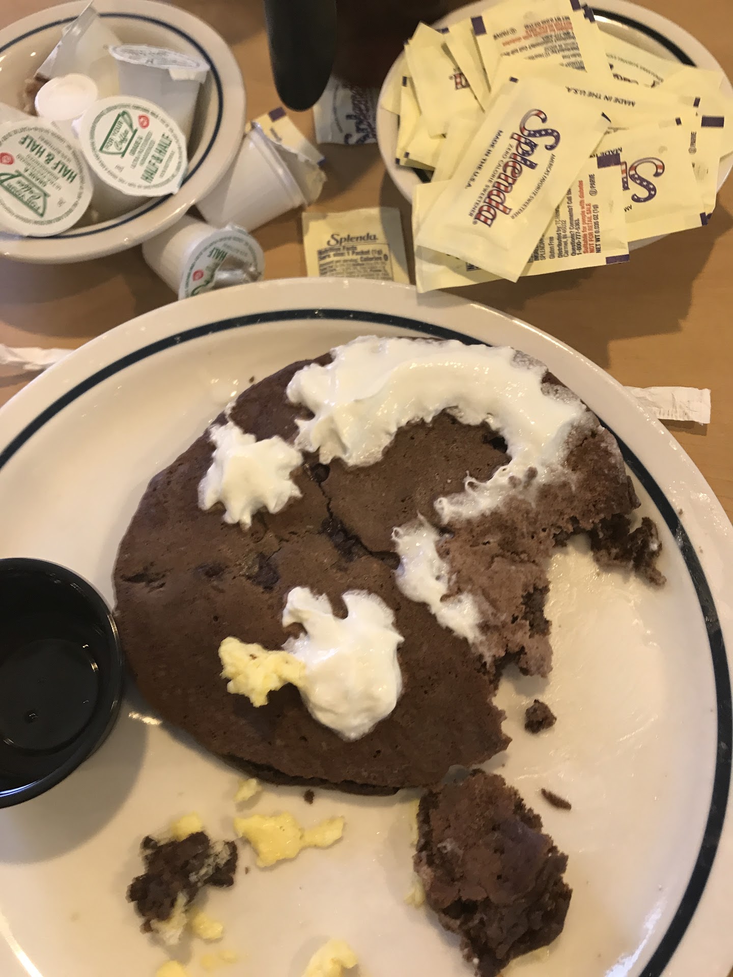 Read moreMy wife and me visited this location on Monday. There were at least 8 waiters and waitresses. Meanwhile, we couldn't find our waiter when we needed him, TWICE. At check out, I was refused the senior discount, because they don't offer it if you take advantage of one of their "all you can eat pancakes" combos. We should've known this, since it's posted on some sign at the bottom of one the entrance doors, and on a slip of paper that's taped to the back of the cash register. I then asked for the discount on my wife's omelet. I was then told that every meal on the check is disqualified from getting the senior discount, as long as one person had an all you can eat pancakes combo. When I explained that there's always some song and dance in this place, the manager dug in his heels. I went on to explain that in essence, I was paying for the so called "free" pancakes. The $2.60 lost discount was offsetting the value of the free pancakes. All of sudden, the phantom waiter appeared, and added his input. Btw, more than once during this debacle, the manager suggested that if I wasn't happy, I shouldn't come back. In any event, after pointing out to waiter, that his service was substandard, I allowed him to pay for my "free" pancakes, by giving him a big goose egg. Next time we'll be off to the Hillsborough Star Diner. They never screw up, especially with their...