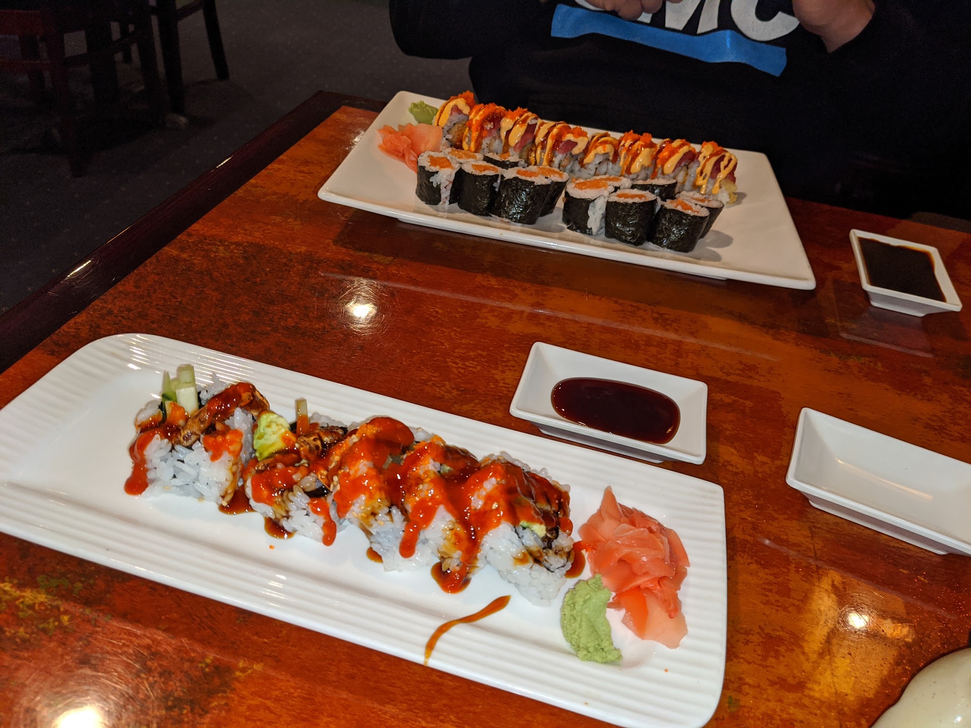 Regarding 'atmosphere' rating - it isn't the sexiest restaurant but what the decor lacks for the food makes up for. This place is super casual. Can't knock it for atmosphere. If you want atmosphere & great food drive down the road to Aja in Montgomery & pay...