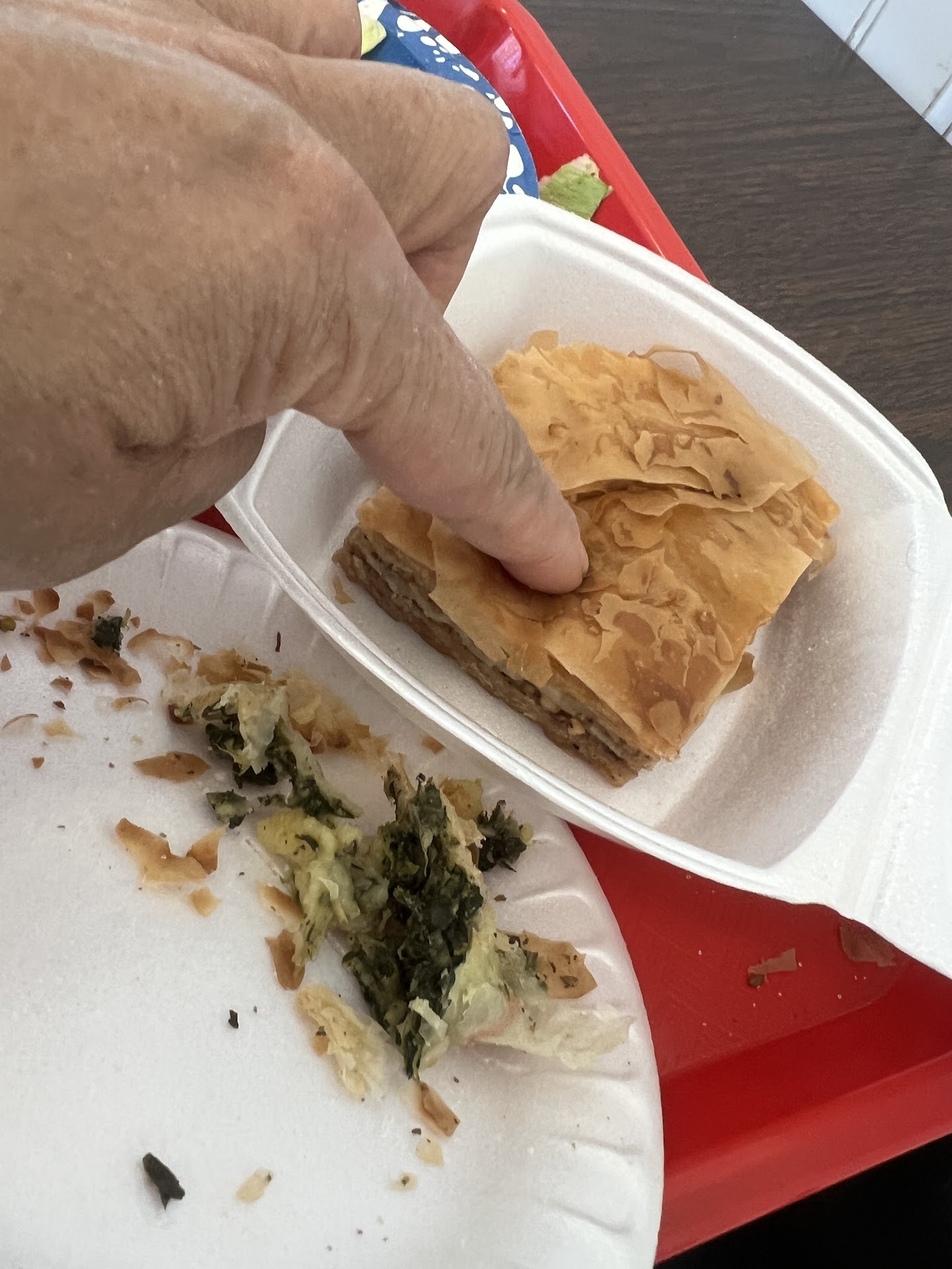 Read moreSuper disappointment. I accompanied a friend who likes this place. Now have lived in the New York City metro area and attended college and lived in Washington DC where there are amazing Greek and Mediterranean restaurants so I knew what I was ordering. I have also expertly created spanakopita and baklava myself. So, I ordered the spanakopita and baklava for dessert. The spanakopita had a weird stale taste. I ordered 2 of them, opened one up to look inside, there was a raw dough like substance, I did not see any feta cheese. The other had a small blob of what appeared to be cheese in it. The phyllo dough was not firm on the outside. If I was not so hungry I would have thrown it in the trash. The baklava was awful! Awful, awful, awful! The phyllo dough was not crisp it was soft and the inside was not tasty at all. I was expecting a honey-like inside with walnuts or pistachio. I requested that they warm it, thinking that it would in an oven that may take the chill off of the inside and crisp up the outside and the guy put it in the microwave. I did not eat it and left it on the table. YUK! This place is now on my "Do...