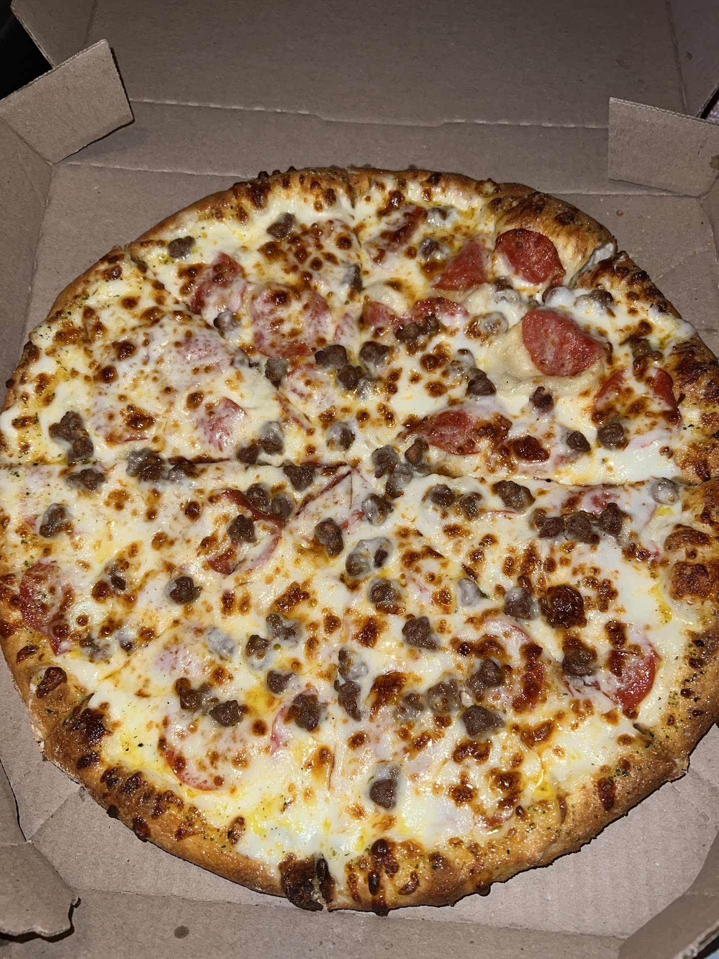 Read moreI usually go here to get the stuffed cheesey bread, and the chocolate lava cakes on occasion. I went in person about a week ago, and because I don't eat pork, I asked if I could have beef and jalapenos on my bread instead of bacon. (I gave up on just getting it without bacon while ordering online because it always came on it when delivered, so I make the drive in person now.) The skinny, tall white guy there said it was no problem. I'm sad I didn't catch his name. I went home happy.