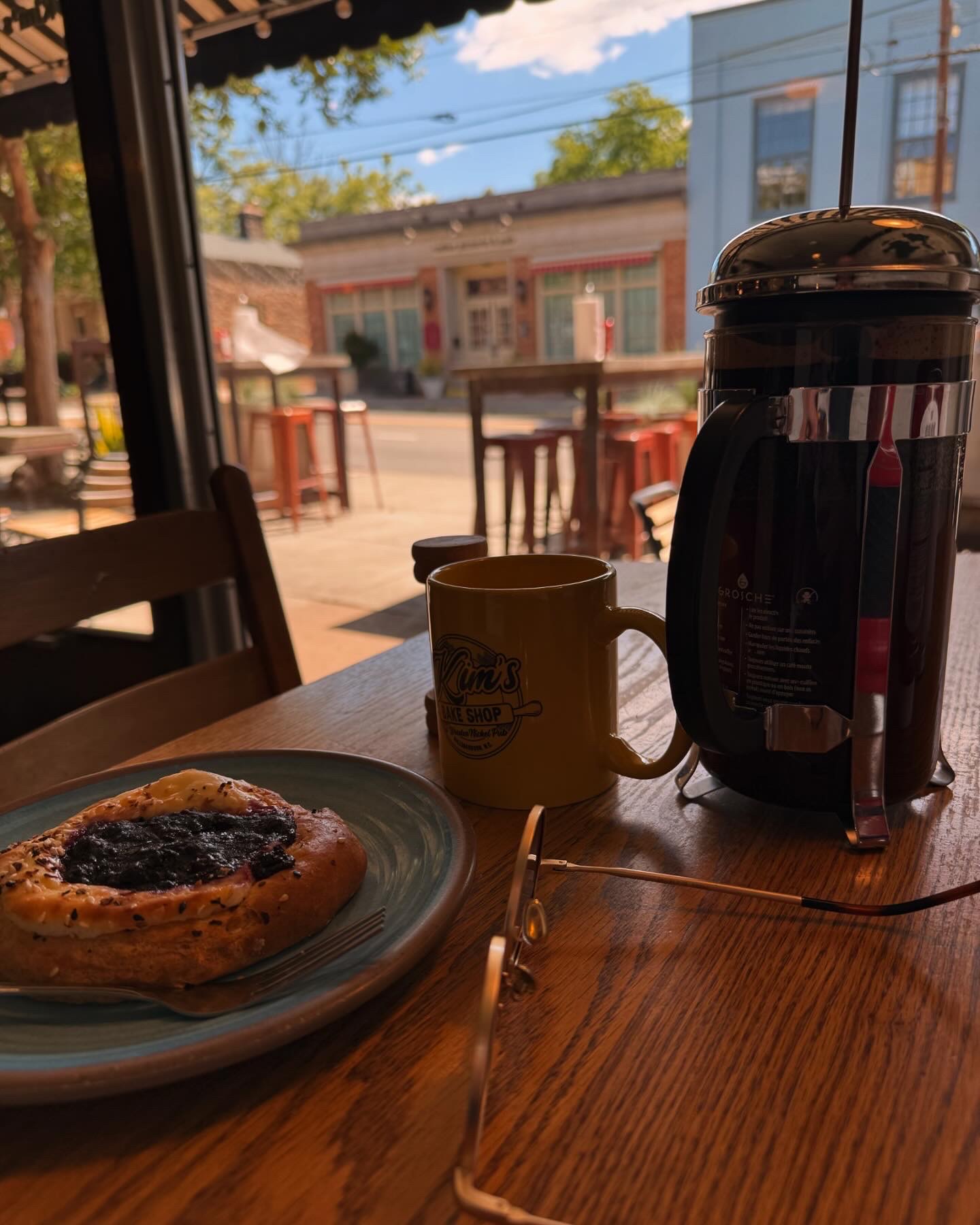 Met a friend for coffee and a treat Friday, May 30th. Charming and legit are the adjectives the first come to mind- it was charming to receive my cup of their standard coffee in a French press with a wooden/glass timer that was perfectly brewed at my table when the last grain of sand fell into the bottom of the glass timer-also charm galore in the nostalgia of the Historic James Pharmacy decor and presence in the sticky original glass and wooden double doors as you enter. Legit in the fresh doughnuts of the day selections along with all the confections sweet and savory you could dream up for a coffee date w a friend! My friend and I chose well: brown sugar pop tart, cranberry orange scone, and the savory egg and ham galette- Unexpectedly the big surprise for me was the VIDL wine selection that Kim herself took the time to tell me about. I selected the red that promised the best āfunkā that natural wine lovers know and love. It lived up to its promise. Thank you Kim for your craft and love and sharing it generously with the folk in and around...