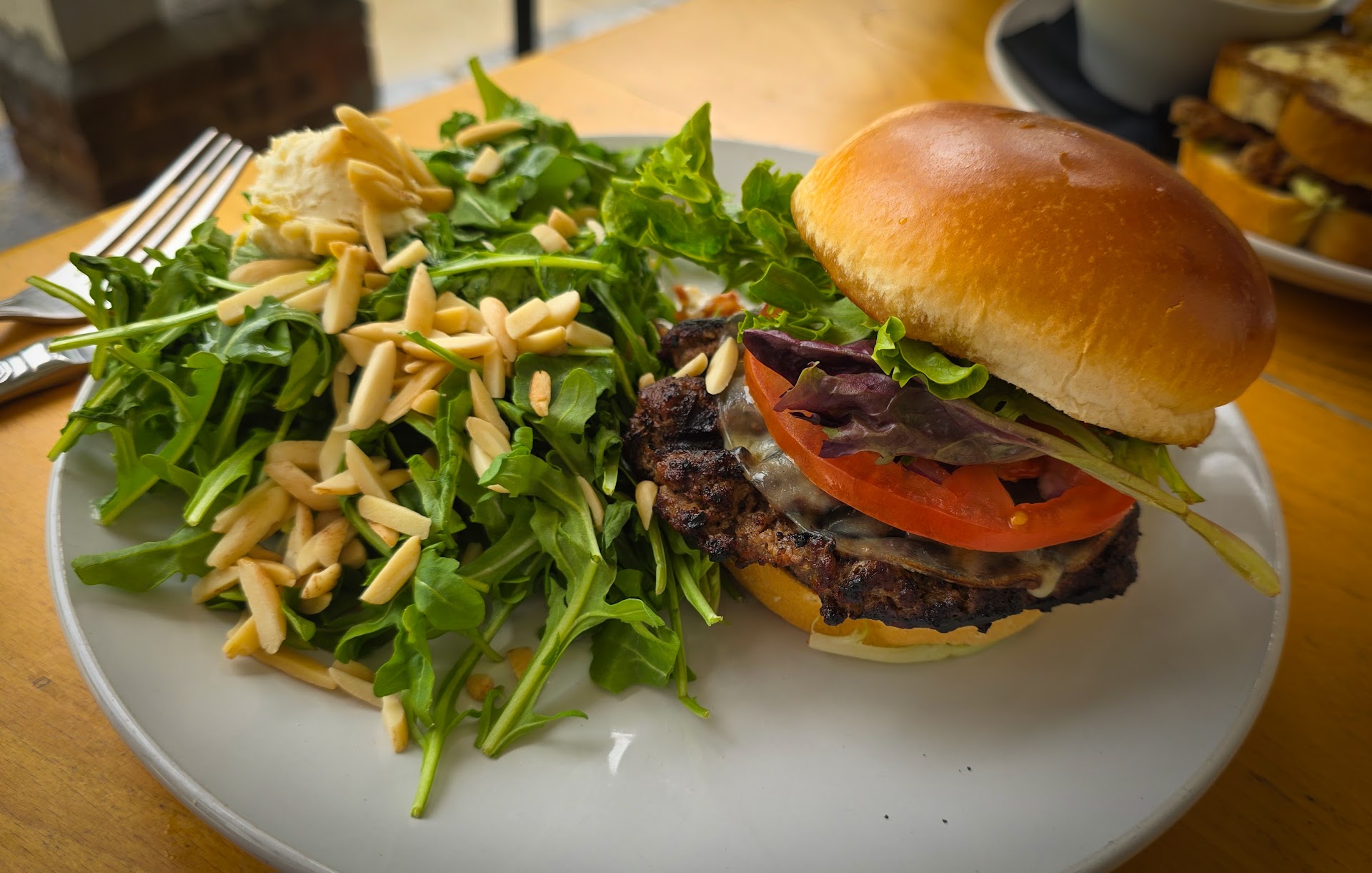 The burger was mediocre, zero seasoning on the beef. The tomato was flavorless. The worst part is they plated the salad and burger together, so my bottom bun was literally like a soggy napkin in the short amount of time in bringing the food to the table.